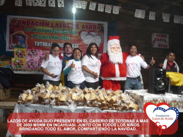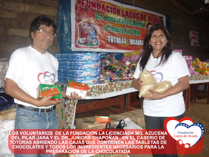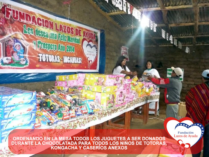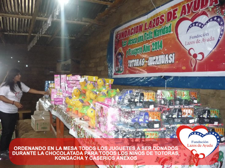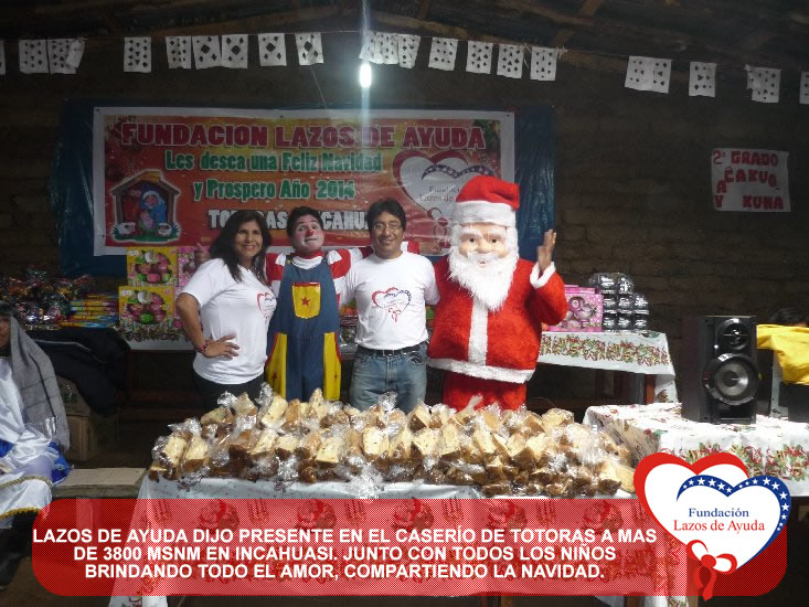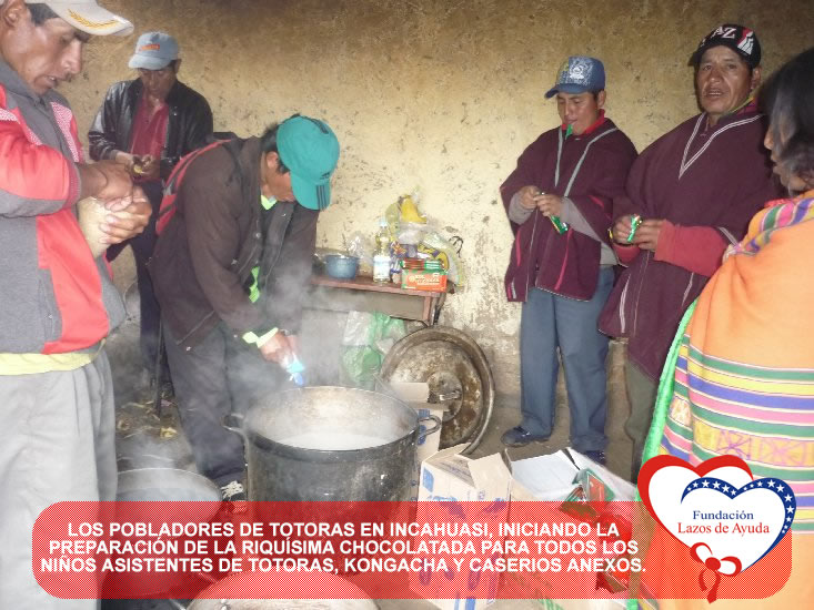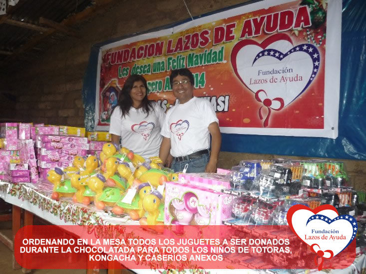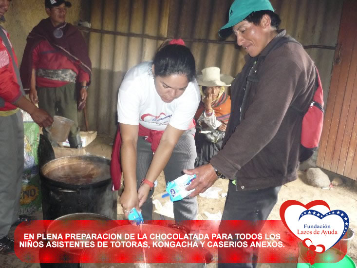 Lazos de Ayuda Foundation with the intention of sharing the Christmas spirits with our brothers of extreme poverty make hot cocoa and delivery of toys for the children of Totoras, Kongacha and hamlets annexes in INCAHUASI, in the SIERRA of the north of Peru.
