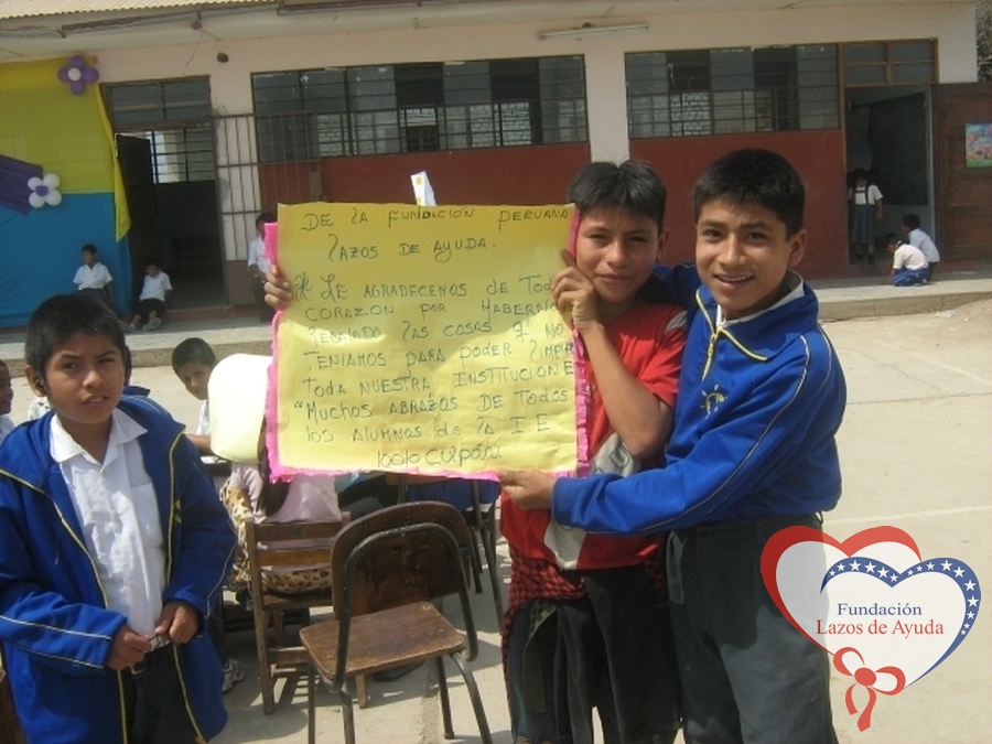 The Fundación Peruana Americana Lazos de Ayuda has found no qualifying adjectives of gratitude to convey to the entire community of Atlanta the detachment and disinterested support for their genuine collaboration, direct to the Culpón School of Lambayeque. It is known that the whole world lived tense moments when six months ago we met and began to spread the influenza virus AH1N1. Therefore, taking all the precautions of the case and despite the fact that the tide fell in the intensity of the contagion in these last weeks, it was decided to carry out the following measures: It is preferable that instead of healing the sick, be prepared in advance to avoid damage and not run the risk of fatal consequences that could come if we don’t prevent. Therefore on Saturday October 10 was fumigation and disinfection of all facilities of the School, from top to bottom from side to side, in each of the folders and chairs of our children and in all corners of the premises making it effective in their red vests and with the safety clothing for the case professionals in Environmental Sanitation Callao, the company PUNTO ROJO. The mission of fumigating was given so that children can enjoy a clean and safe habitat against the horror that viruses spread. Since cleaning must be present on a day-to-day basis we managed the delivery of large and small garbage cans, dustpans, brooms, mops, buckets for draining, etc. It was a donation that was also given thanks to his love for the neighbor and the Lord that our community demonstrates with these acts fighting to be able to feed that hope of faith. Because we know that if we managed to eliminate poverty, suffering would be alleviated, and we would contribute to peace and spiritual tranquility. It is an important part of the children’s development in their health, in addition to the moral values that they should receive the knowledge to discern between the good and the bad. To that end we focused on parents and the teachers, and towards them the training in the case of the proper use of the different cleaning materials. Highlighting this point the joint rather than individual work done as a team that professes its praise to the Almighty in a work provided with communication, harmony, coordination and the great dose of love without waiting for a stipend, only the satisfaction of helping for reasons purely humans. With the clean School as a final part and to thank for the works done the Eucharist was in charge of the Reverend Father .