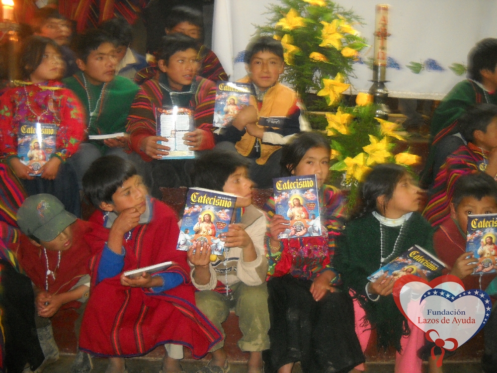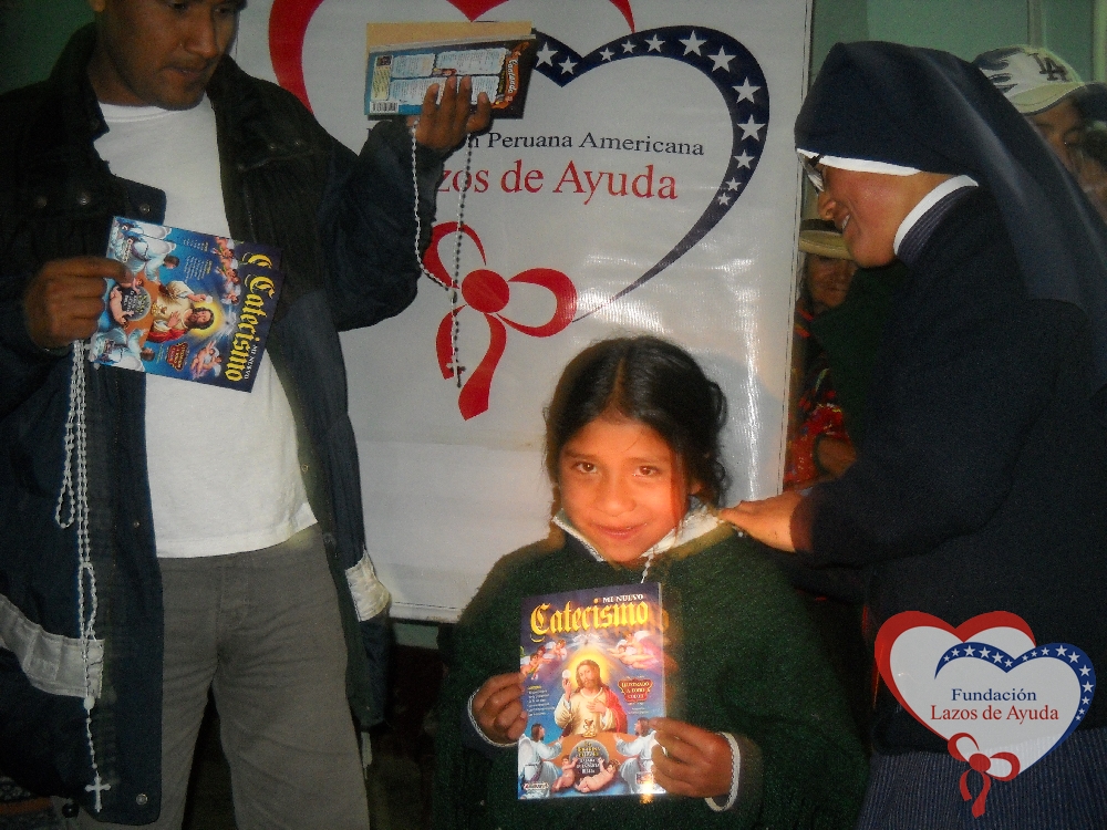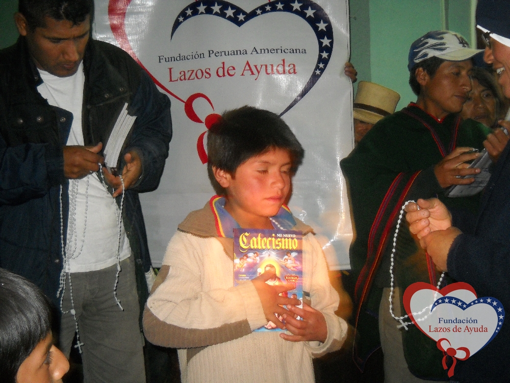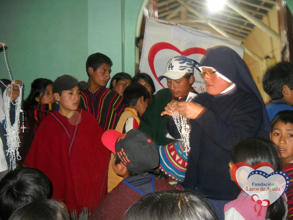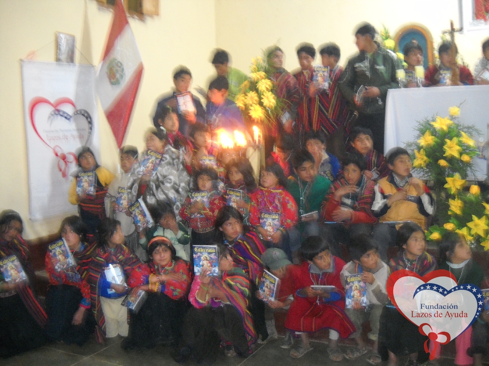 Full of that religious fervor on the occasion of Holy Week, Lazos de Ayuda Foundation made a donation of 200 catechisms, the same number of rosaries and also the same number of Easter eggs to the children of the towns of Uyurpampa and Canchalaya in Incahuasi in a day where meditation reigned with reflection and praising the Lord.