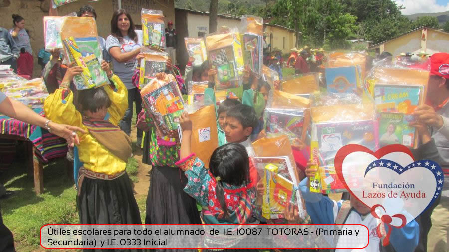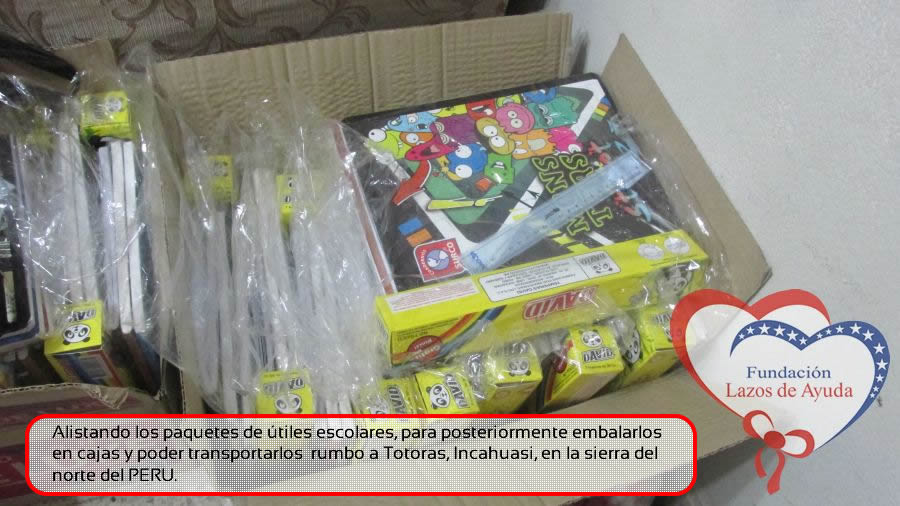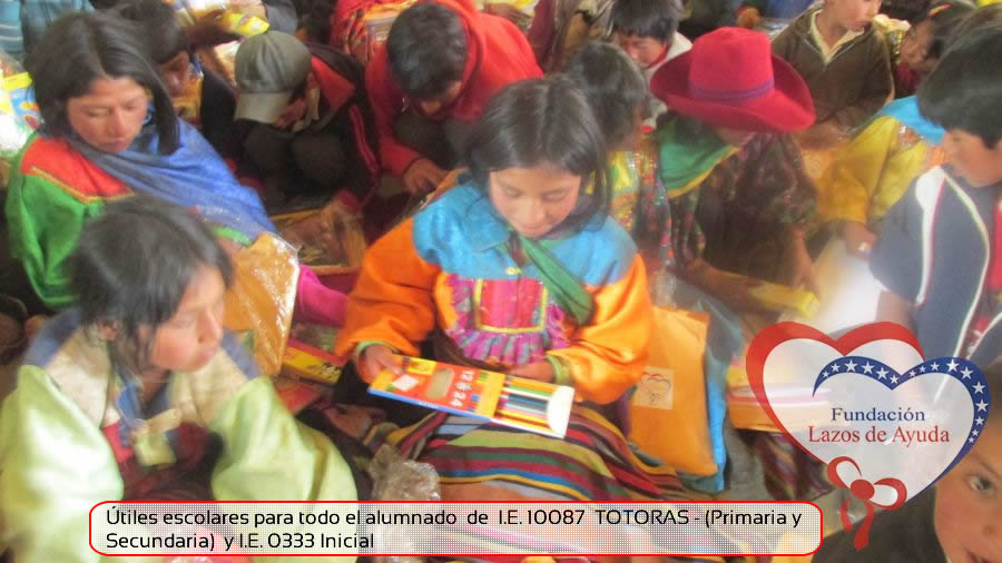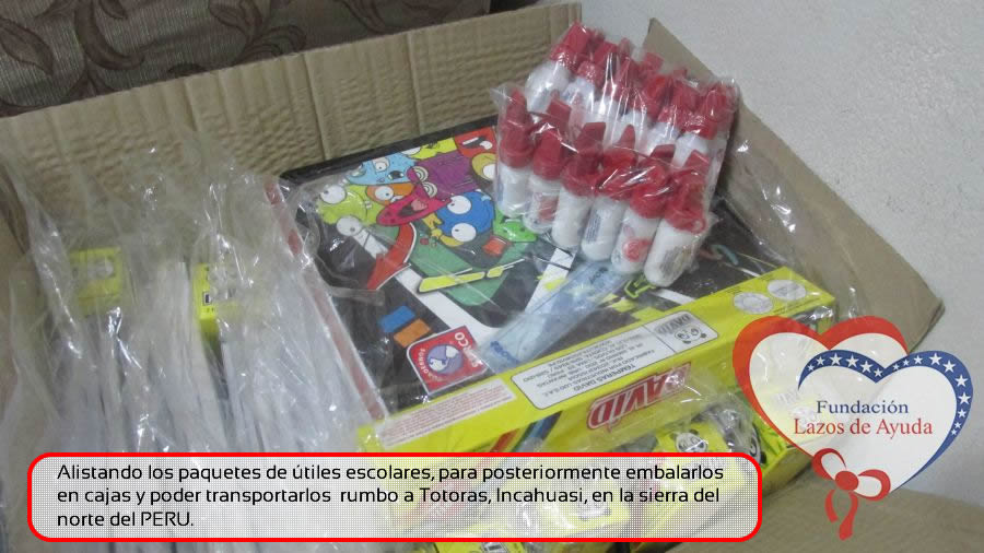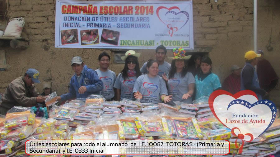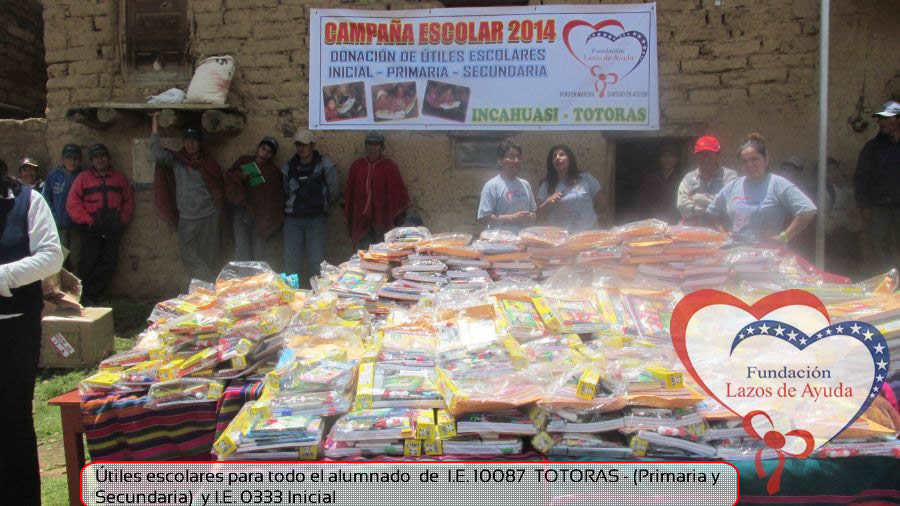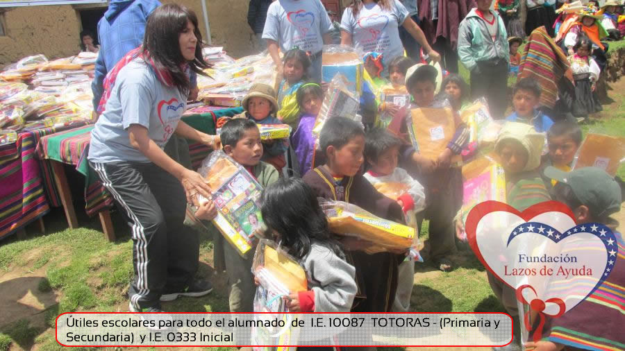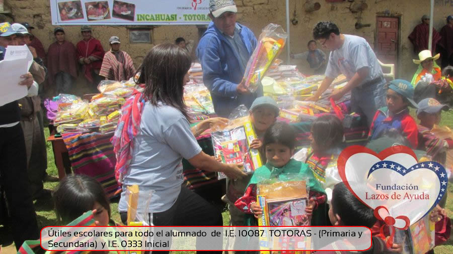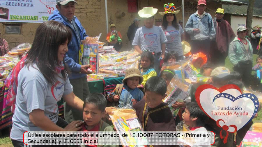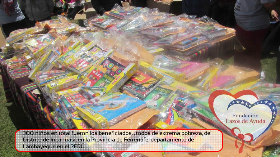 Lazos de Ayuda Foudation, continuing with its annual education program in favor of the students of the district of Incahuasi province of Ferreñafe Department of LAMBAYEQUE, zones of extreme poverty of the north of PERU, made the School supplies package delivery campaign benefiting more than 300 Peruvian brothers: