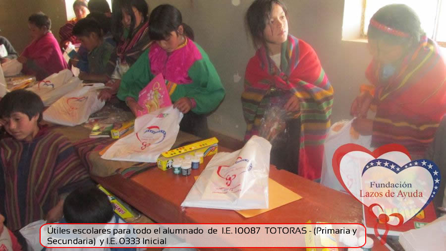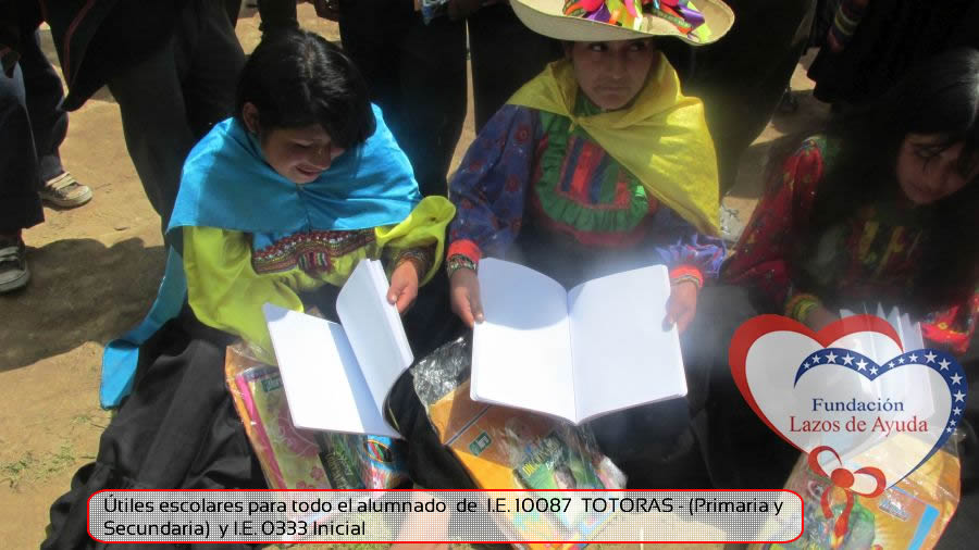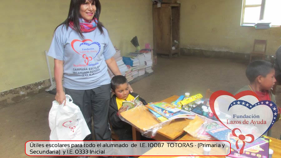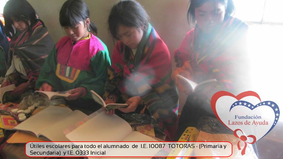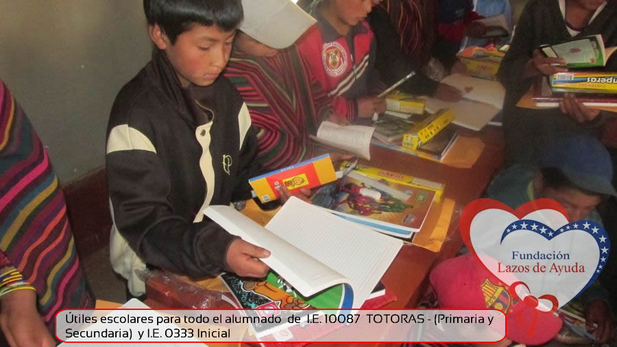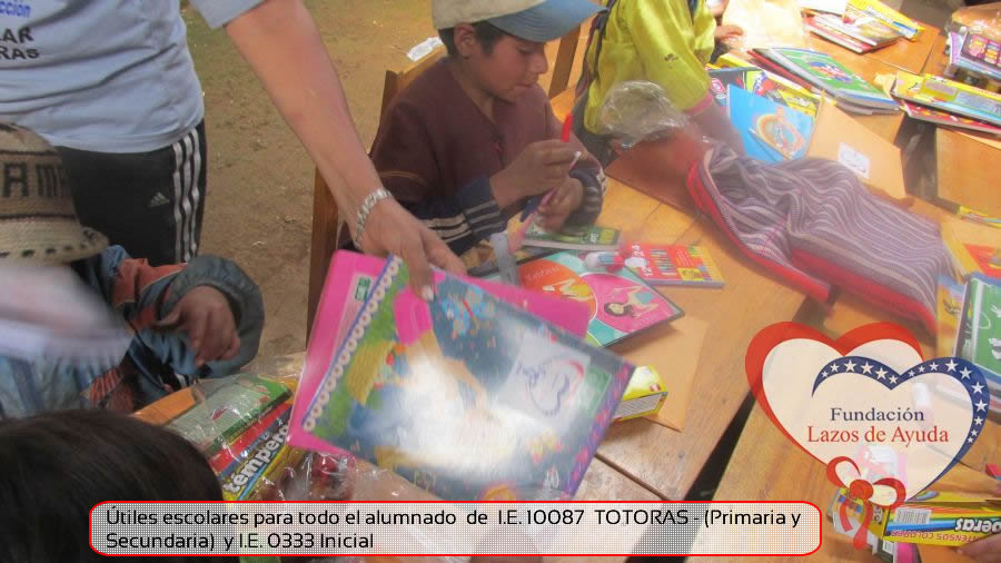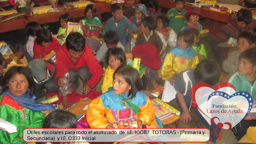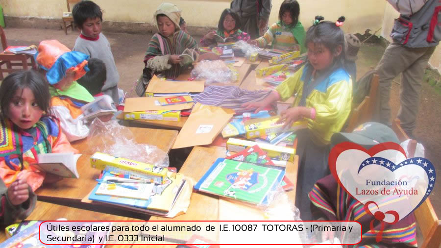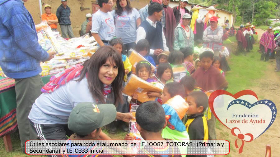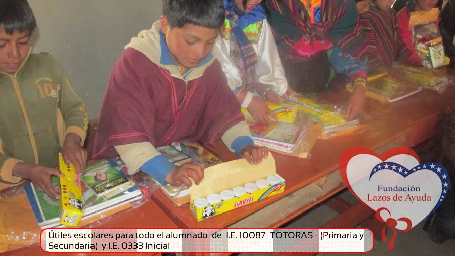 Lazos de Ayuda Foudation, continuing with its annual education program in favor of the students of the district of Incahuasi province of Ferreñafe Department of LAMBAYEQUE, zones of extreme poverty of the north of PERU, made the School supplies package delivery campaign benefiting more than 300 Peruvian brothers: