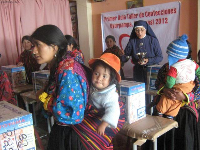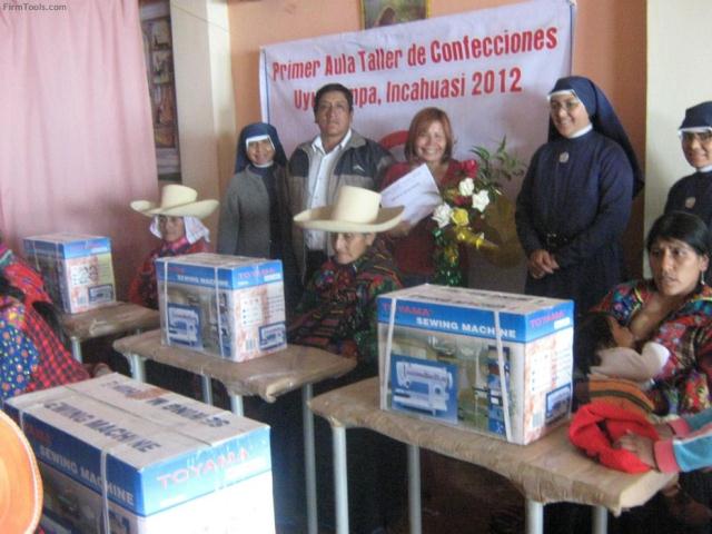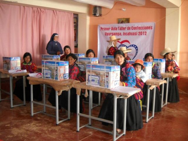 The first workshop classroom is located in Uyurpampa, Incahuasi District, Ferreñafe Province, Lambayeque, Peru. The Foundation in an educational agreement with the missionary Mothers of Jesus Verbo, we implemented the first workshop, with the donation of 10 new sewing machines, along with furniture and raw materials necessary for the learning and practicing the course of cutting and dressmaking. The enthusiasm was so impressive in the mothers of the population, that on their first day we had 22 mothers preregistered in the classroom workshop to undergo a subsequent qualification. In the delivery of the machines were present the mother in charge of the order in Uyurpampa, Mother Priscilla, as well as Justice of peace Evaristo Bernilla of the cross and settlers of the locality. The main objectives are to train the mothers technically, with a trade for free and to generate a source of decent employment in order to improve the critical situation in which they live. We continue on this path of social help, thinking that the best way to get closer to the improvements in living conditions of the neediest is through adequate training and education. “This is the beginning of a big project. May God bless you and continue to work for the poorest, who only ask for a chance” .
