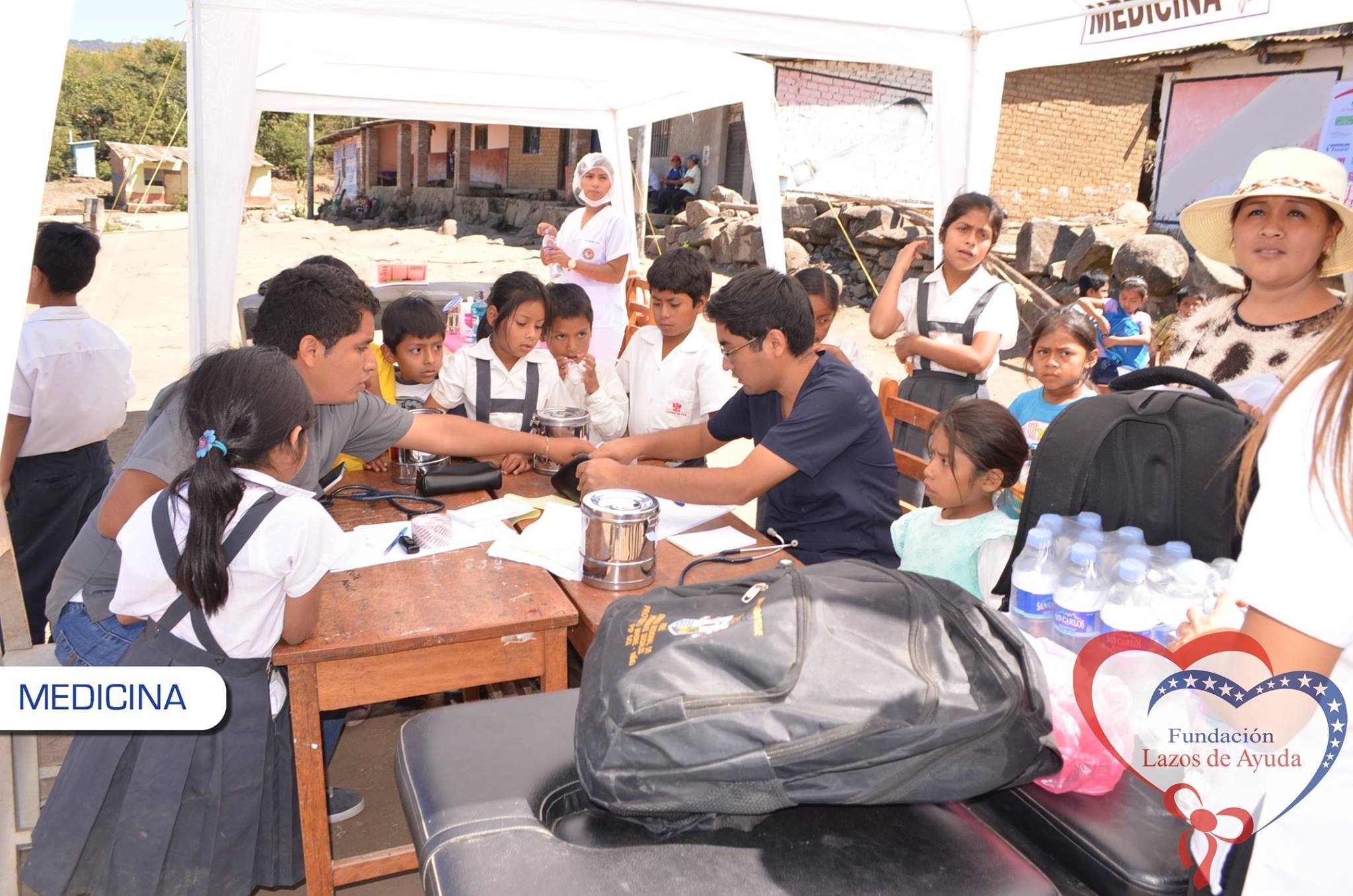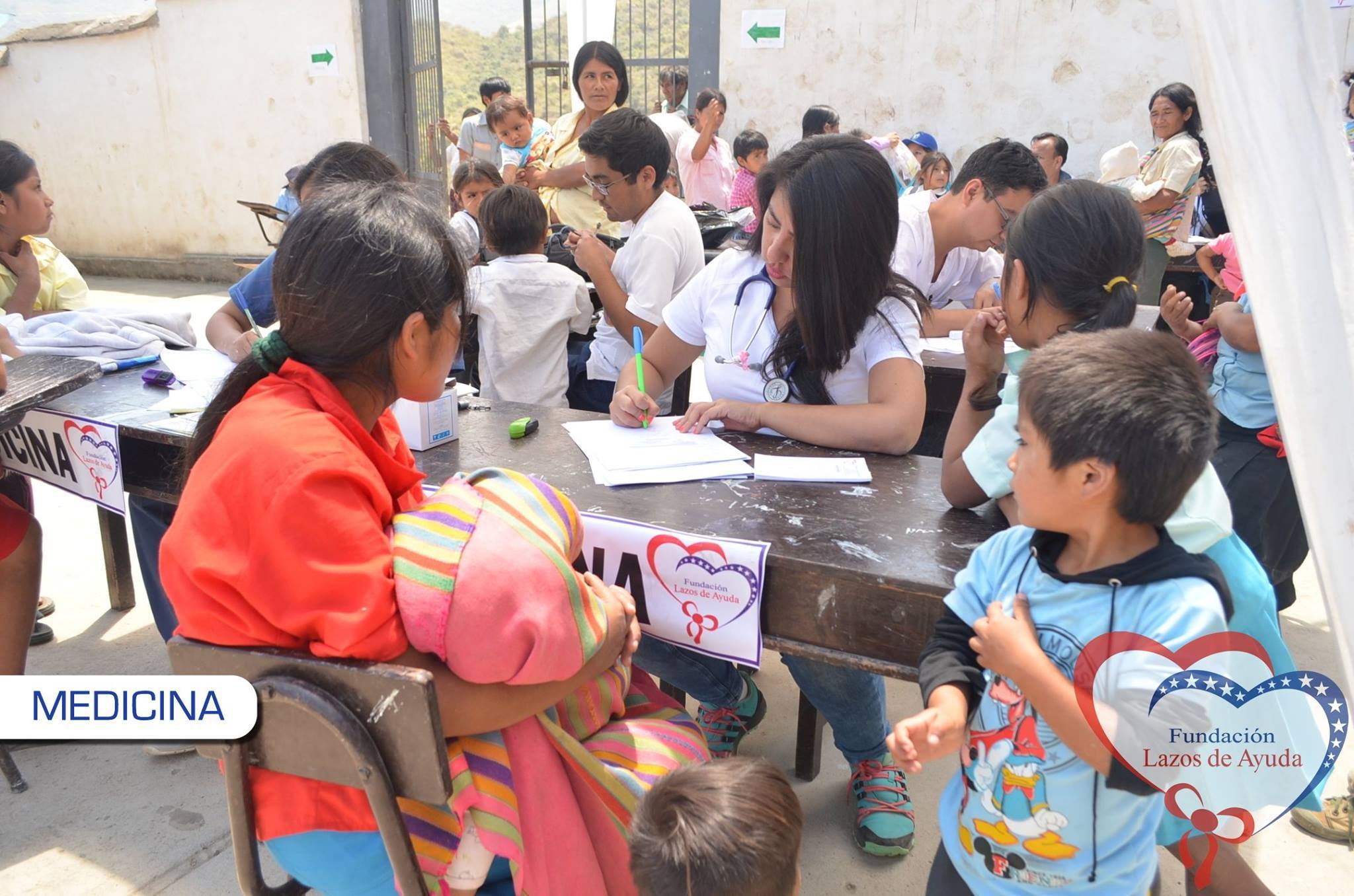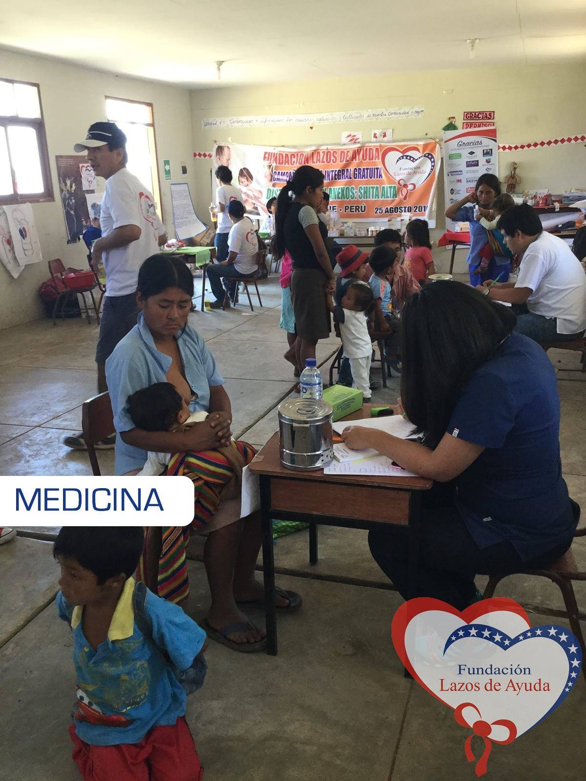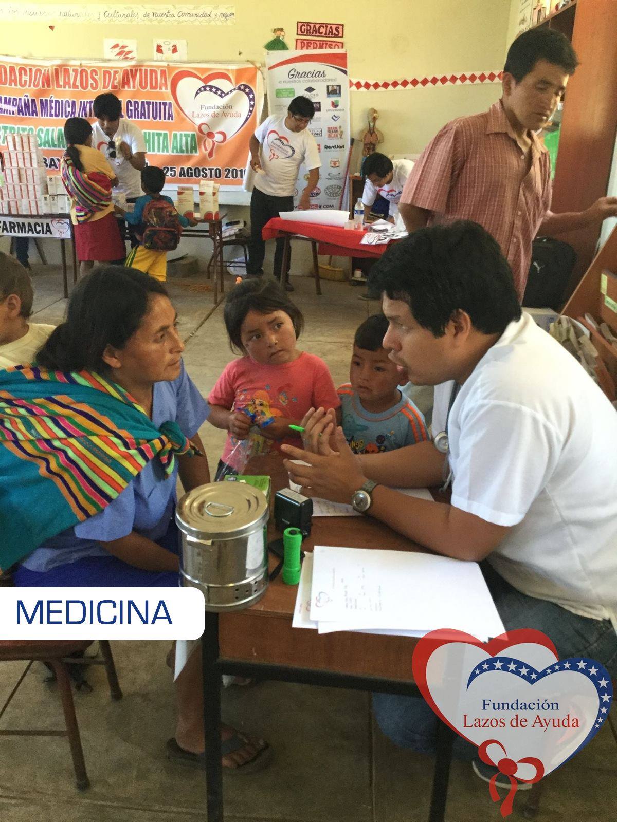 Making a bond of love through the doctors visiting the village of Sauce. Lazos de Ayuda Foundation, coordinated with the chief doctor of the medical post of the willow farm Dr. Javier Torres Valencia. Triage, General Medicine, Fluorization, Pediatrics, Psychology, Vaccination services were included during the days 25, 26 and 27 of August.
