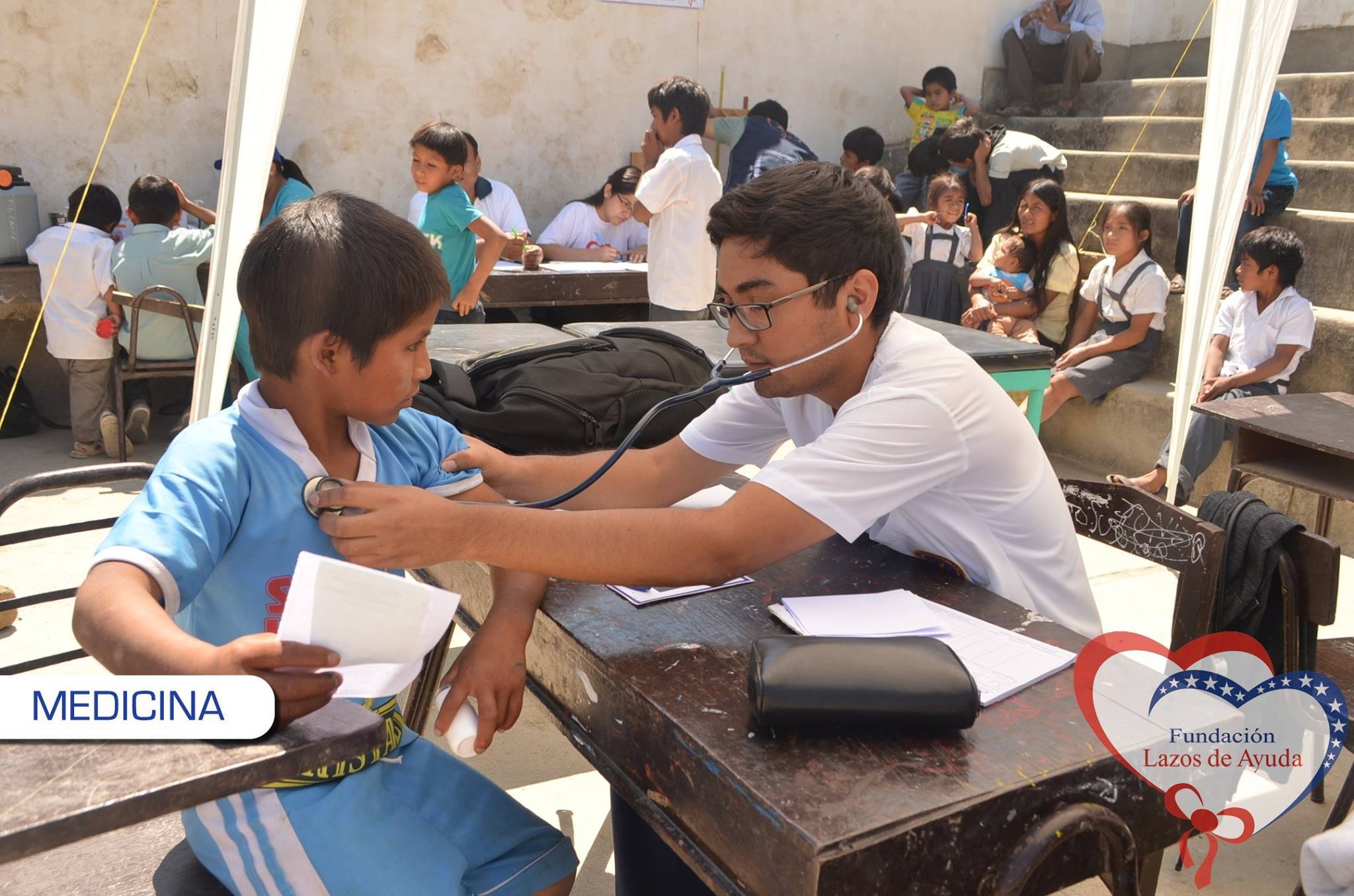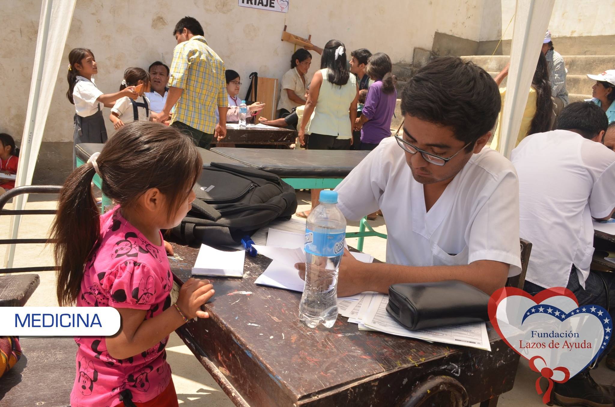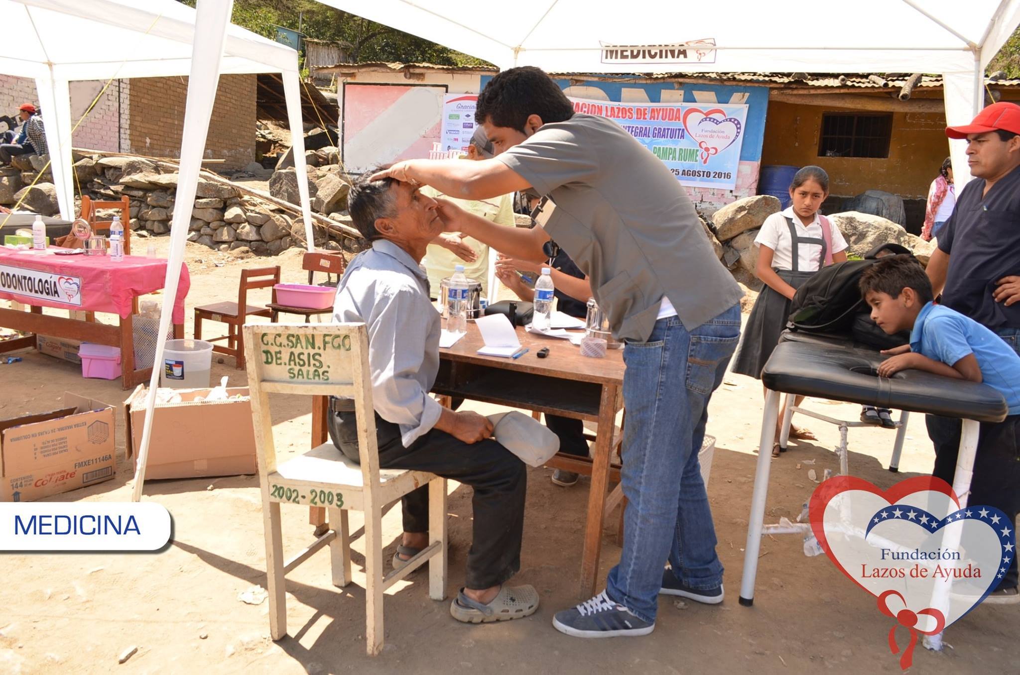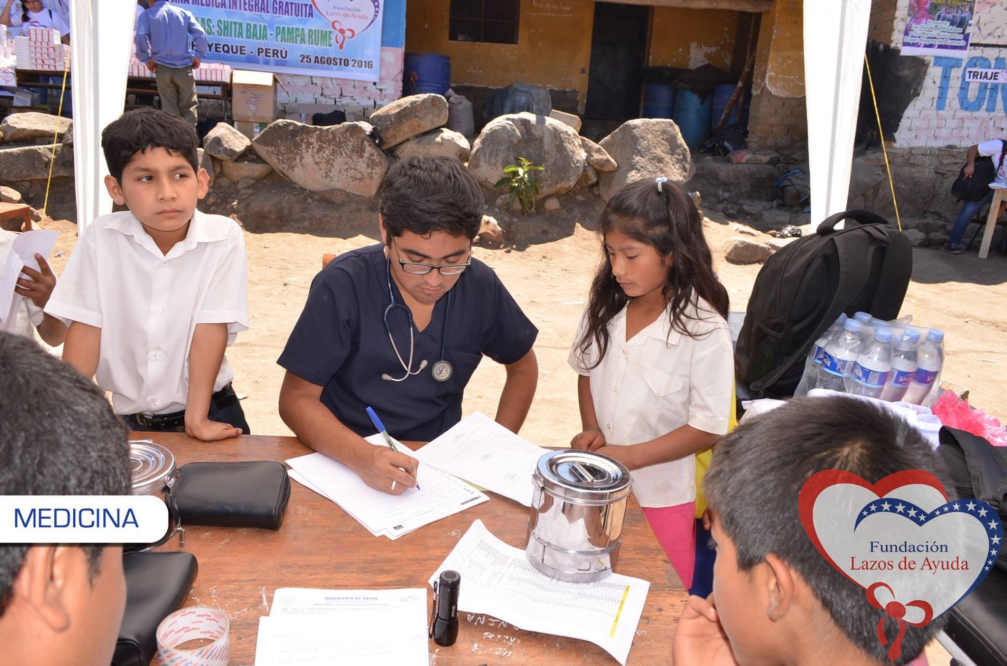 Making a bond of love through the doctors visiting the village of Sauce. Lazos de Ayuda Foundation, coordinated with the chief doctor of the medical post of the willow farm Dr. Javier Torres Valencia. Triage, General Medicine, Fluorization, Pediatrics, Psychology, Vaccination services were included during the days 25, 26 and 27 of August.