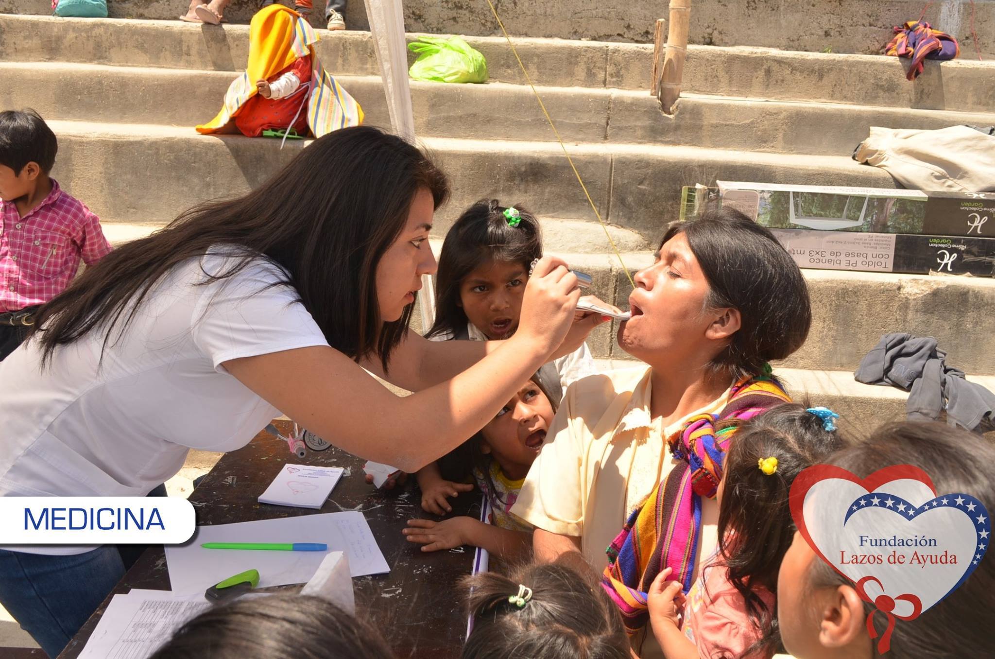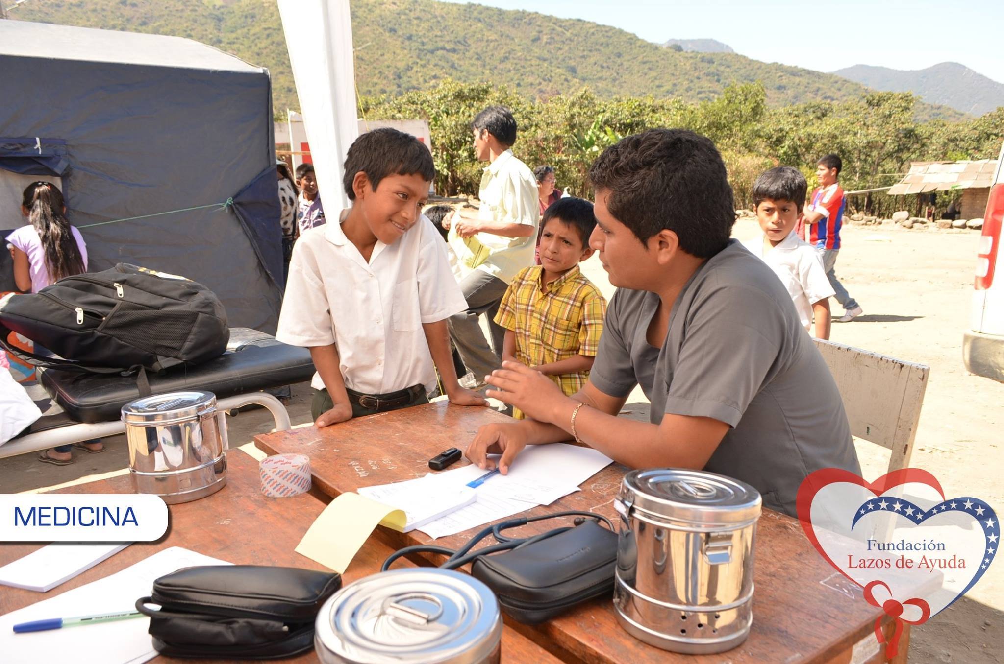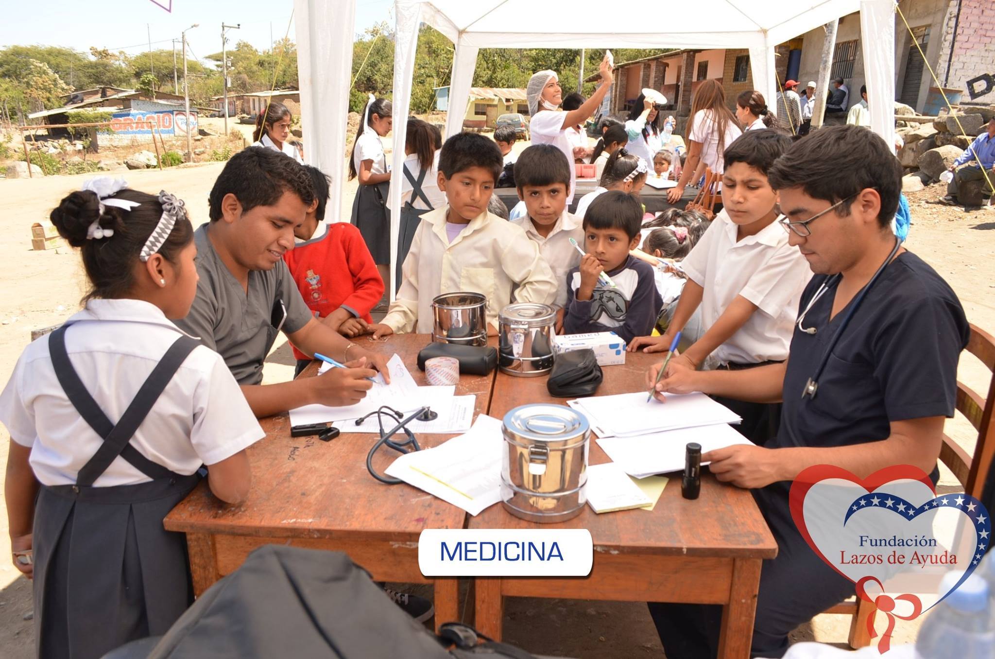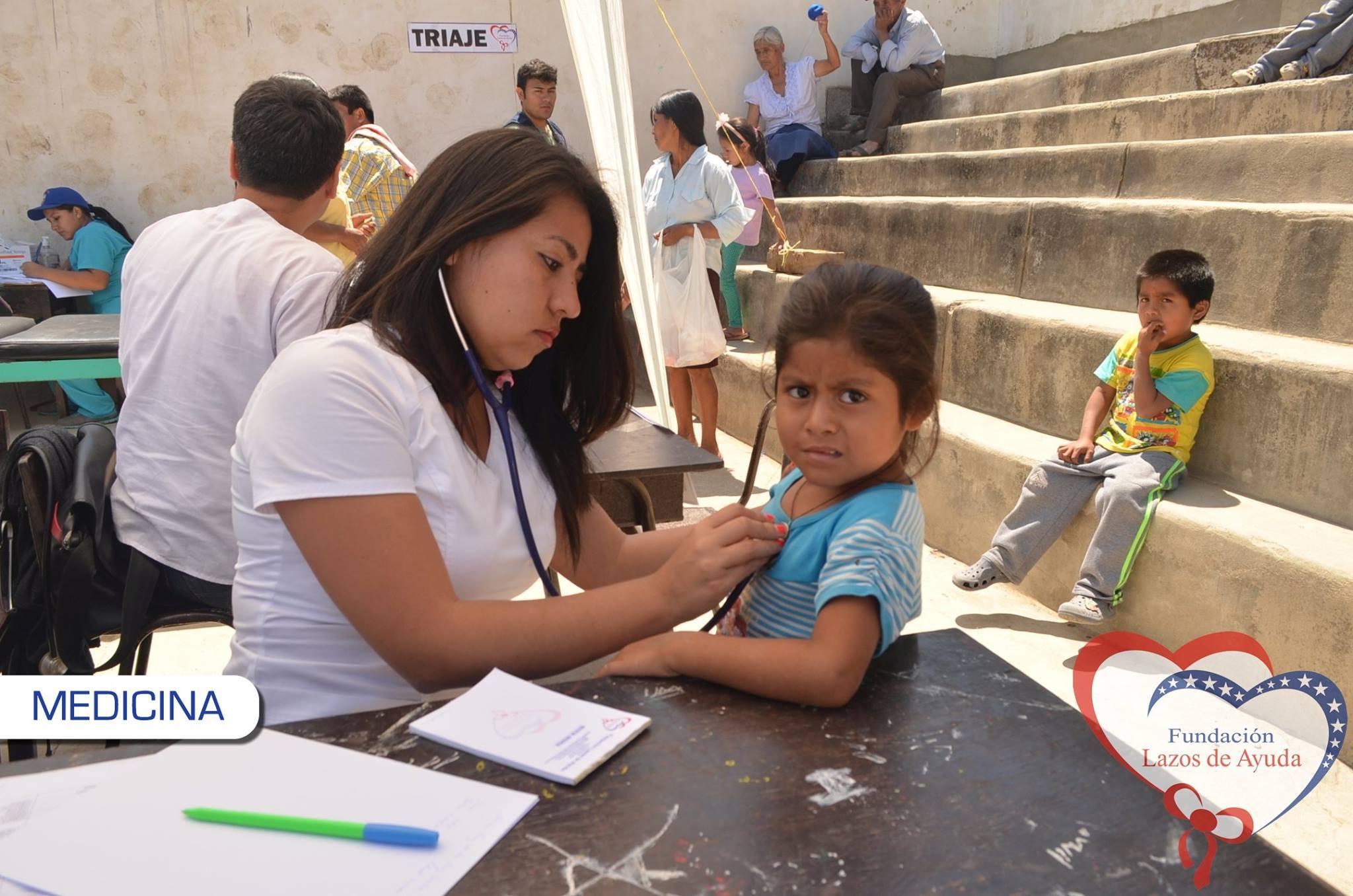 Making a bond of love through the doctors visiting the village of Sauce. Lazos de Ayuda Foundation, coordinated with the chief doctor of the medical post of the willow farm Dr. Javier Torres Valencia. Triage, General Medicine, Fluorization, Pediatrics, Psychology, Vaccination services were included during the days 25, 26 and 27 of August.