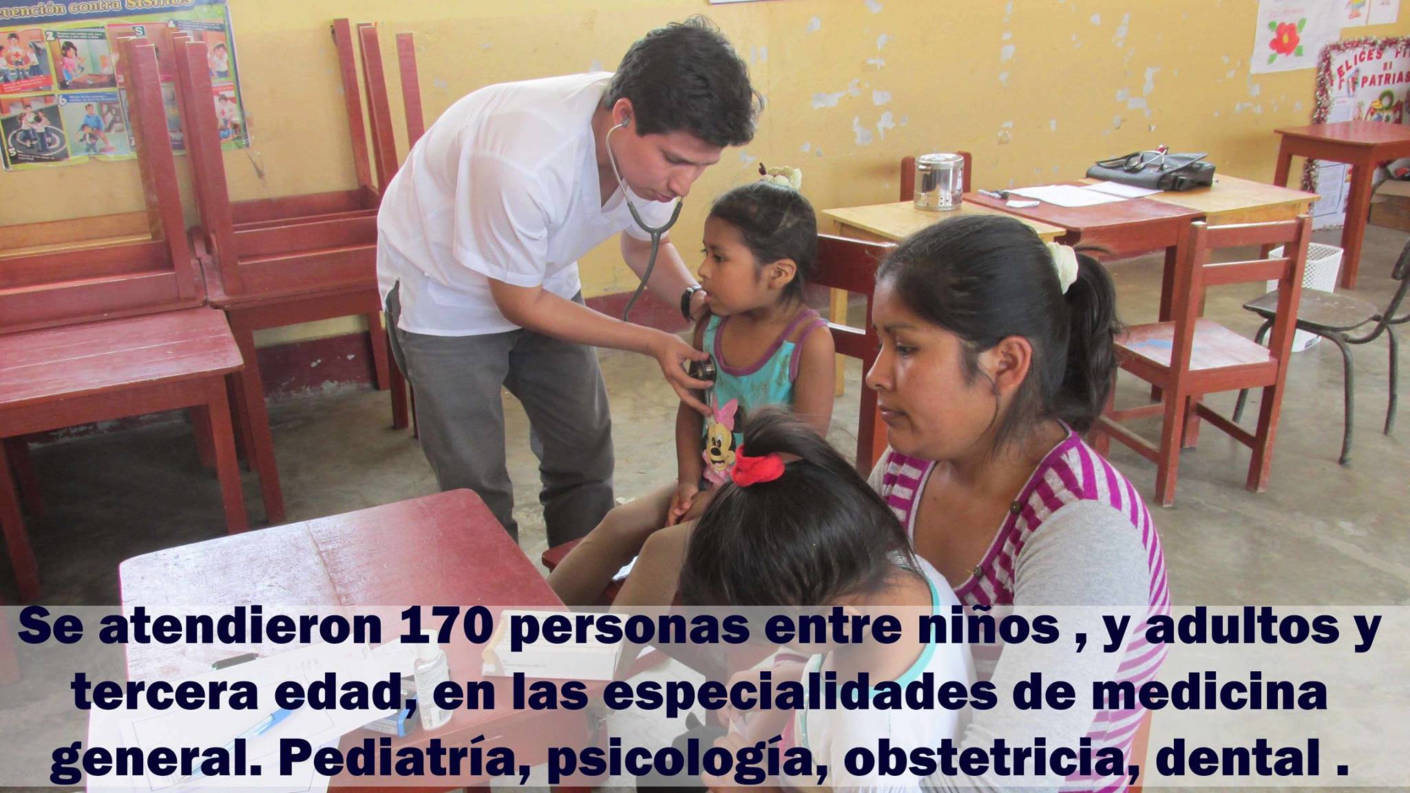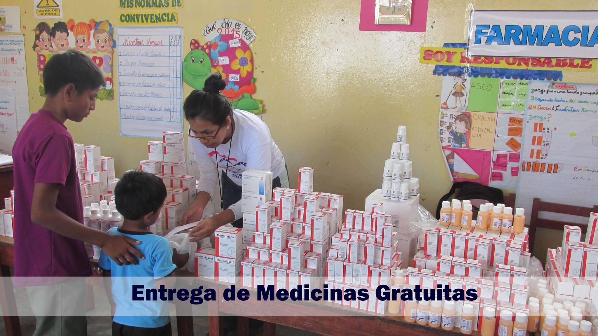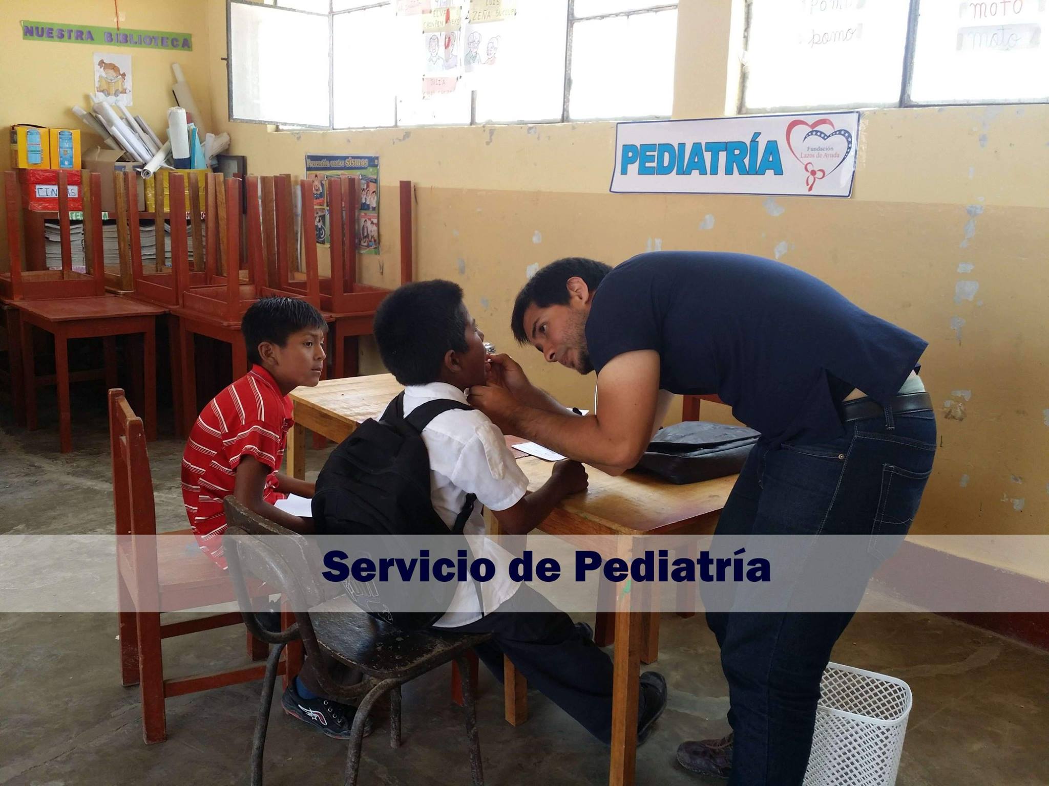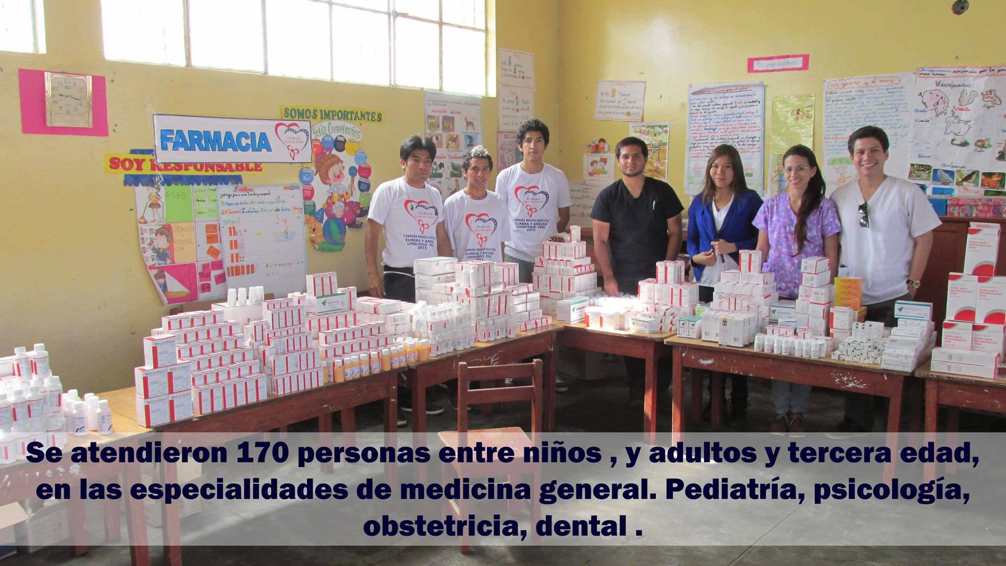 Lazos de Ayuda Foundation in coordination with the Director of EI 11096 of the Eureka Farmhouse conducted, a free medical campaign and donation of medicines, in the hamlet Eureka and annexes, Lambayeque Peru. The Eureka farmhouse does not have a medical care post, for that reason the classrooms of the school were used for the campaign..