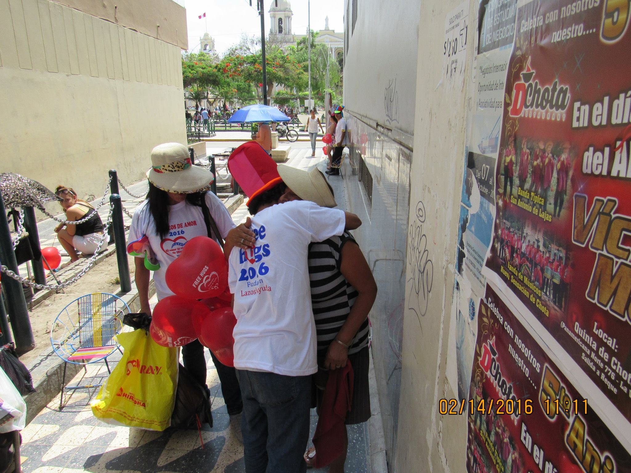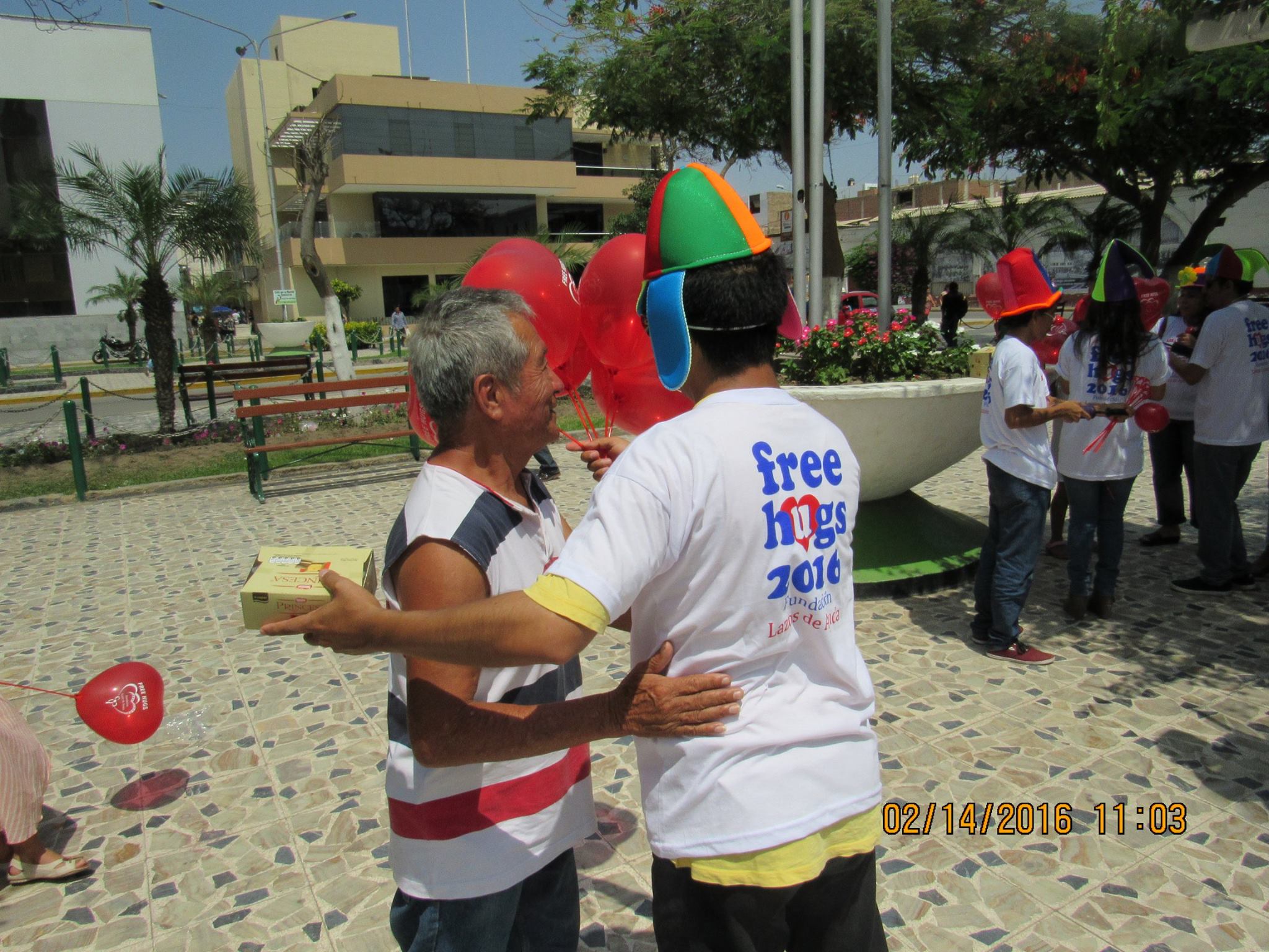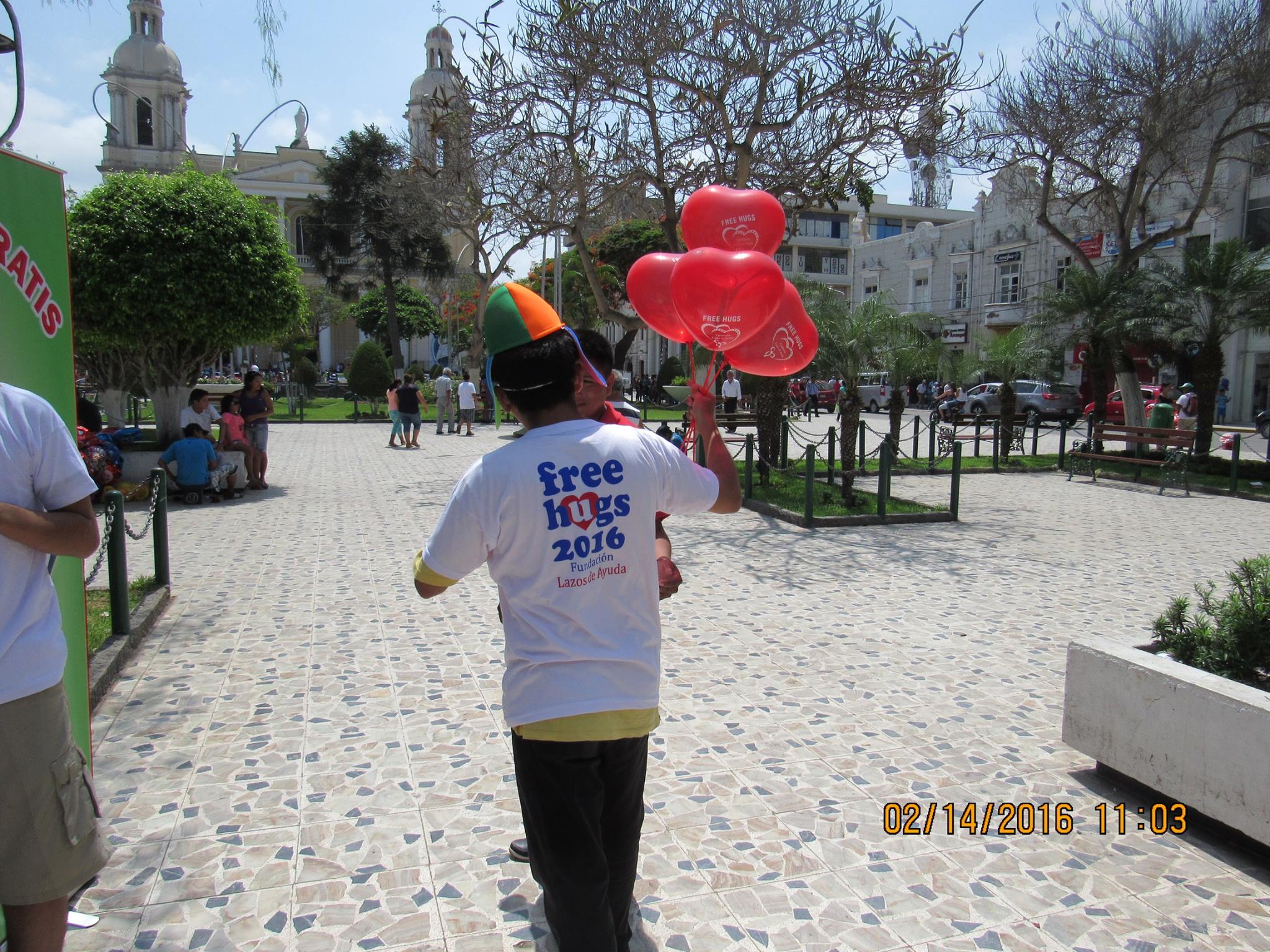 Lazos de Ayuda Foundation on Valentines Day held the event “HUGS & LOVE – FREE HUGS” in the city of Chiclayo in Peru and the city of Atlanta-Georgia. All the love inspired by God our creator was offered by our volunteers to all the people that we could embrace with joy and peace.