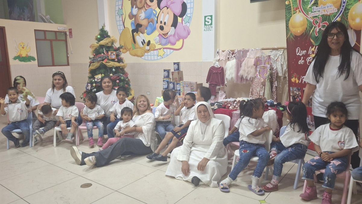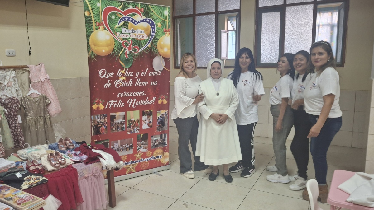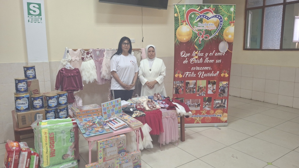 La Fundación Lazos de Ayuda visito el viernes 13 de Diciembre, el ALBERGUE ” SANTA MARÍA JOSEFA DEL CORAZÓN DE JESÚS “ celebrando la festividad navideña, junto a los voluntarios y los niños del Albergue, la madre superiora Teresa M. Ruiz Gonzales recibió una donación de ropa infantil y productos de primera necesidad para los niños, así mismo un aporte económico en efectivo que contribuirá a la alimentación de los menores.