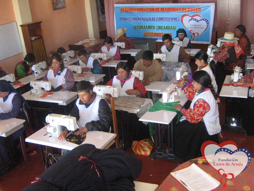 Lazos de Ayuda Foundation made the second donation of 10 sewing machines for the classroom workshop cutting and confection in Uyurpampa. These 10 machines are added to the first 10 donated in 2012.