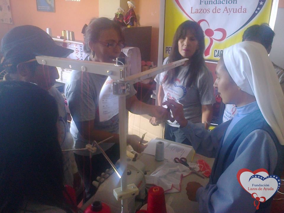 This year 2014 will increased our second workshop of cut and dressmaking with the acquisition of a MELLICERA remeshing machine that will allow the ready-made garments had the best finished quality, given to each participant free Materials such as tape measure, colored threads, needles, pencils, notebooks pins, scissors, one meter of Tocuyo to start the correct use of sewing machines.