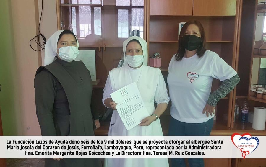 The support from Lazos de Ayuda also reached SANTA MARÍA JOSEFA DEL CORAZÓN DE JESÚS, located in the province of Ferreñafe, Lambayeque region. The approximately 40 children, ranging from newborns to 5 years old, who are housed in this charity institution, were beneficiaries of this organization led by Maritza Castro. Six of the projected 9 thousand dollars to be granted to the shelter this year were handed over to the Administrator Sister Emerita Margarita Rojas Goicochea and the Director Sister Teresa M. Ruiz Gonzales.