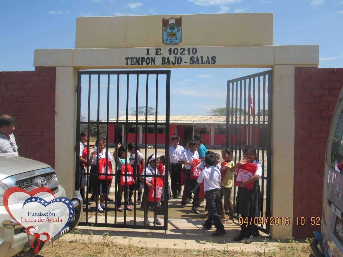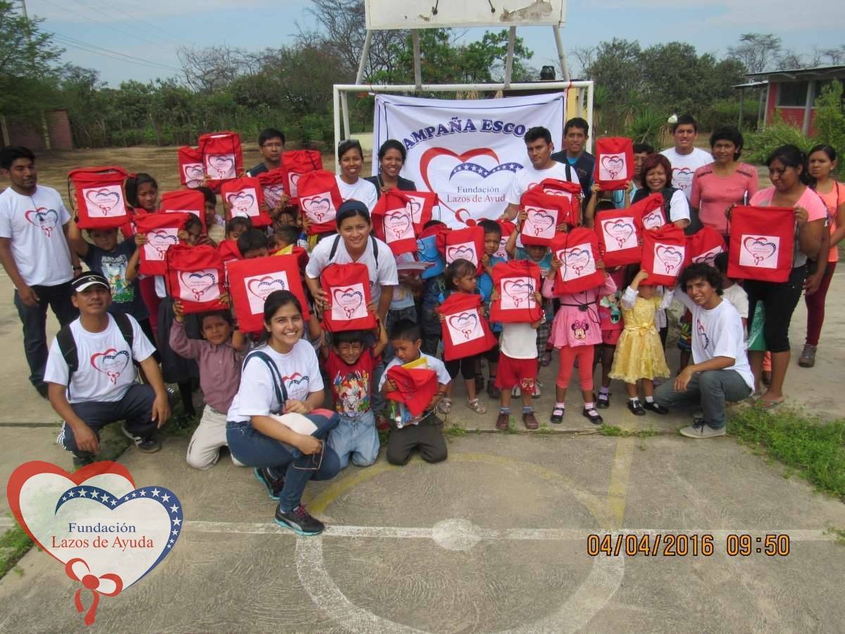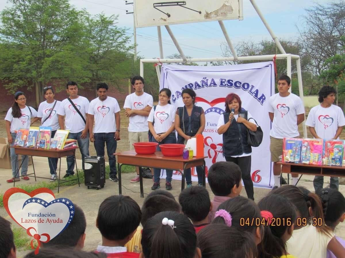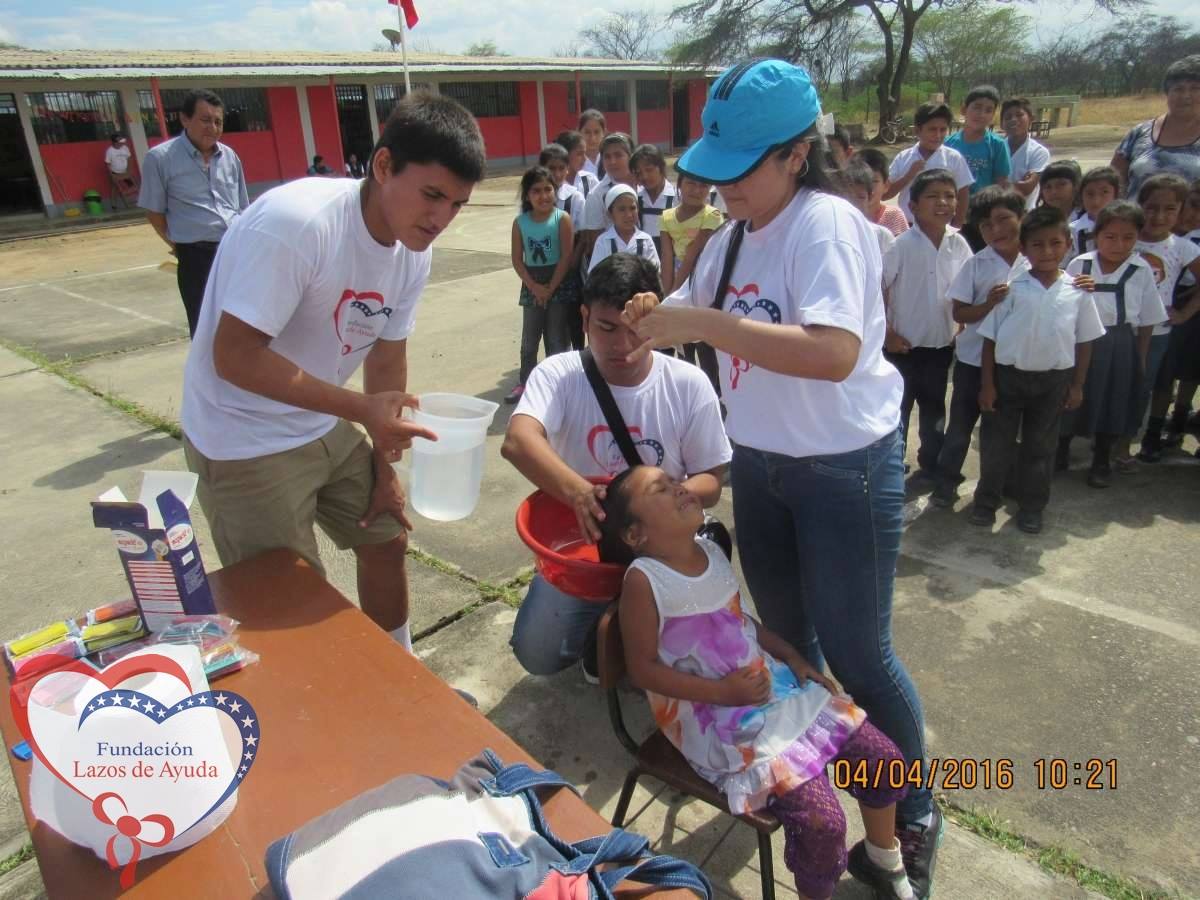 Lazos de Ayuda Foundation together with the student volunteers of human medicine from the Pedro Ruiz Gallo University of Lambayeque, this time fulfilling the objective of the 2016 school campaign, we visited 10 elementary, middle and High schools of the District of Salas of the Province of Lambayeque, Department of LAMBAYEQUE, rural areas of the North of PERU, in addition the young volunteers gave talks on hand washing and control of pediculosis.