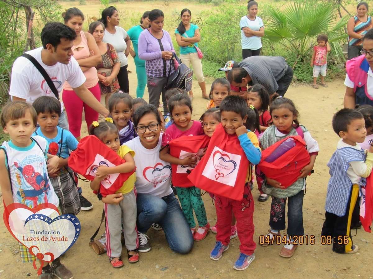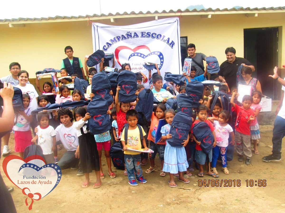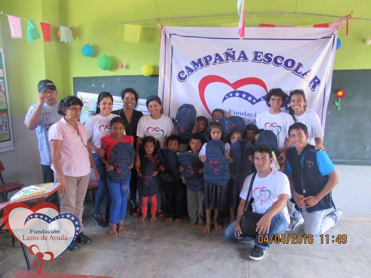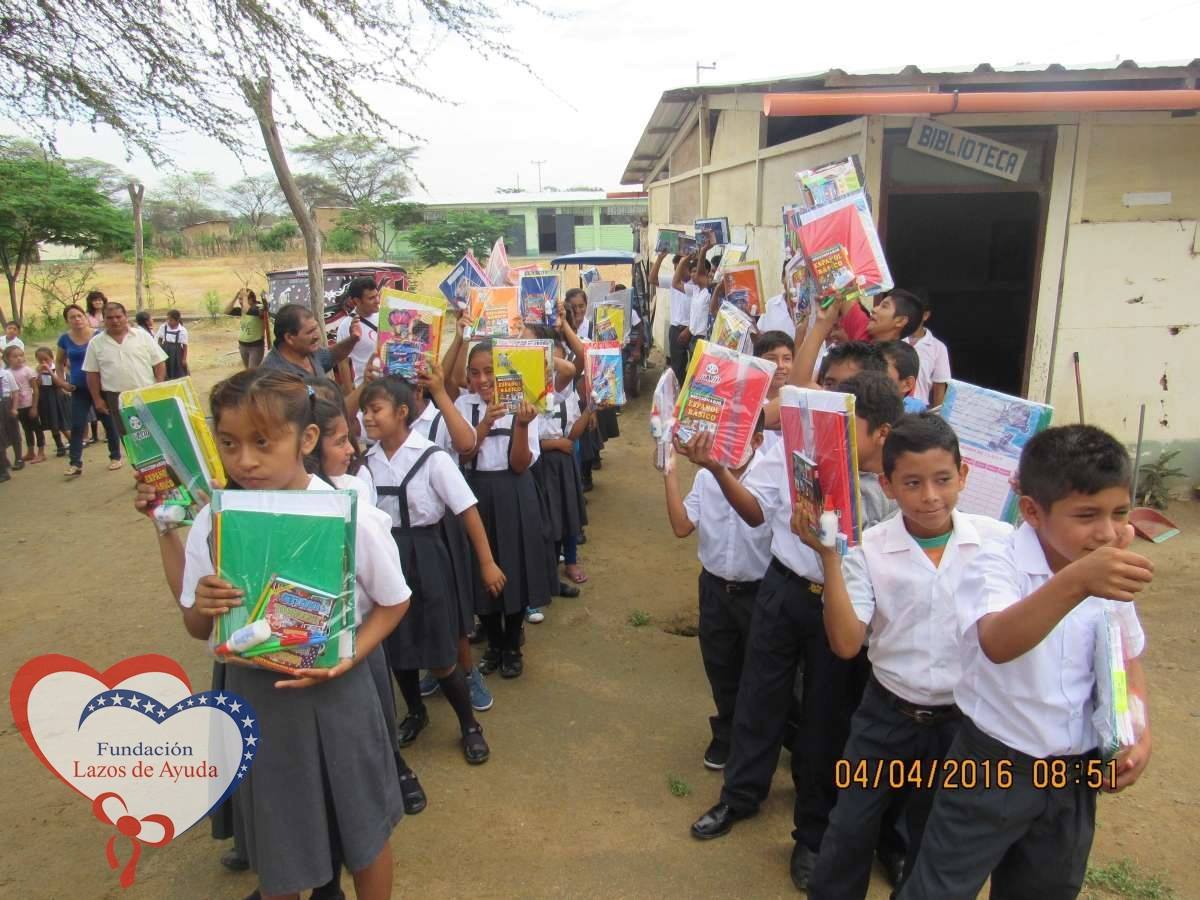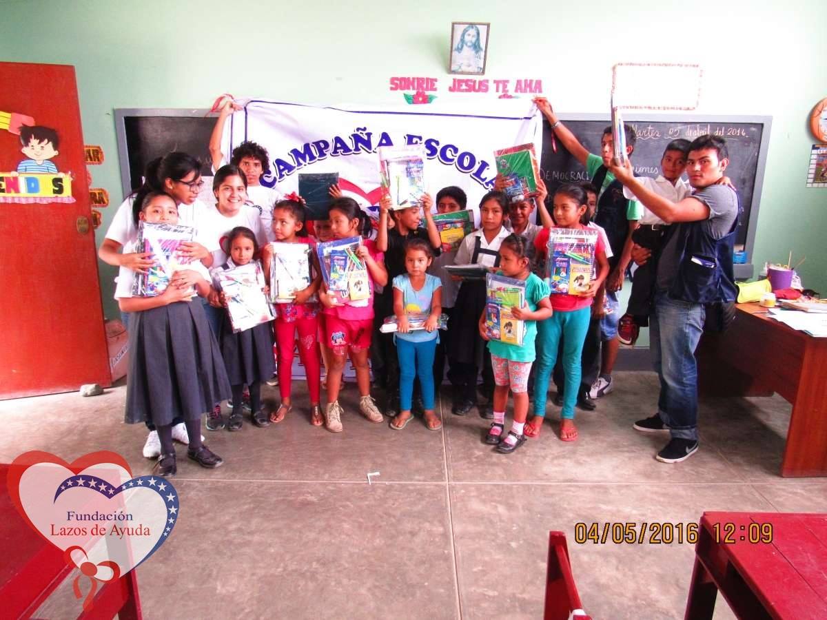 Lazos de Ayuda Foundation together with the student volunteers of human medicine from the Pedro Ruiz Gallo University of Lambayeque, this time fulfilling the objective of the 2016 school campaign, we visited 10 elementary, middle and High schools of the District of Salas of the Province of Lambayeque, Department of LAMBAYEQUE, rural areas of the North of PERU, in addition the young volunteers gave talks on hand washing and control of pediculosis.