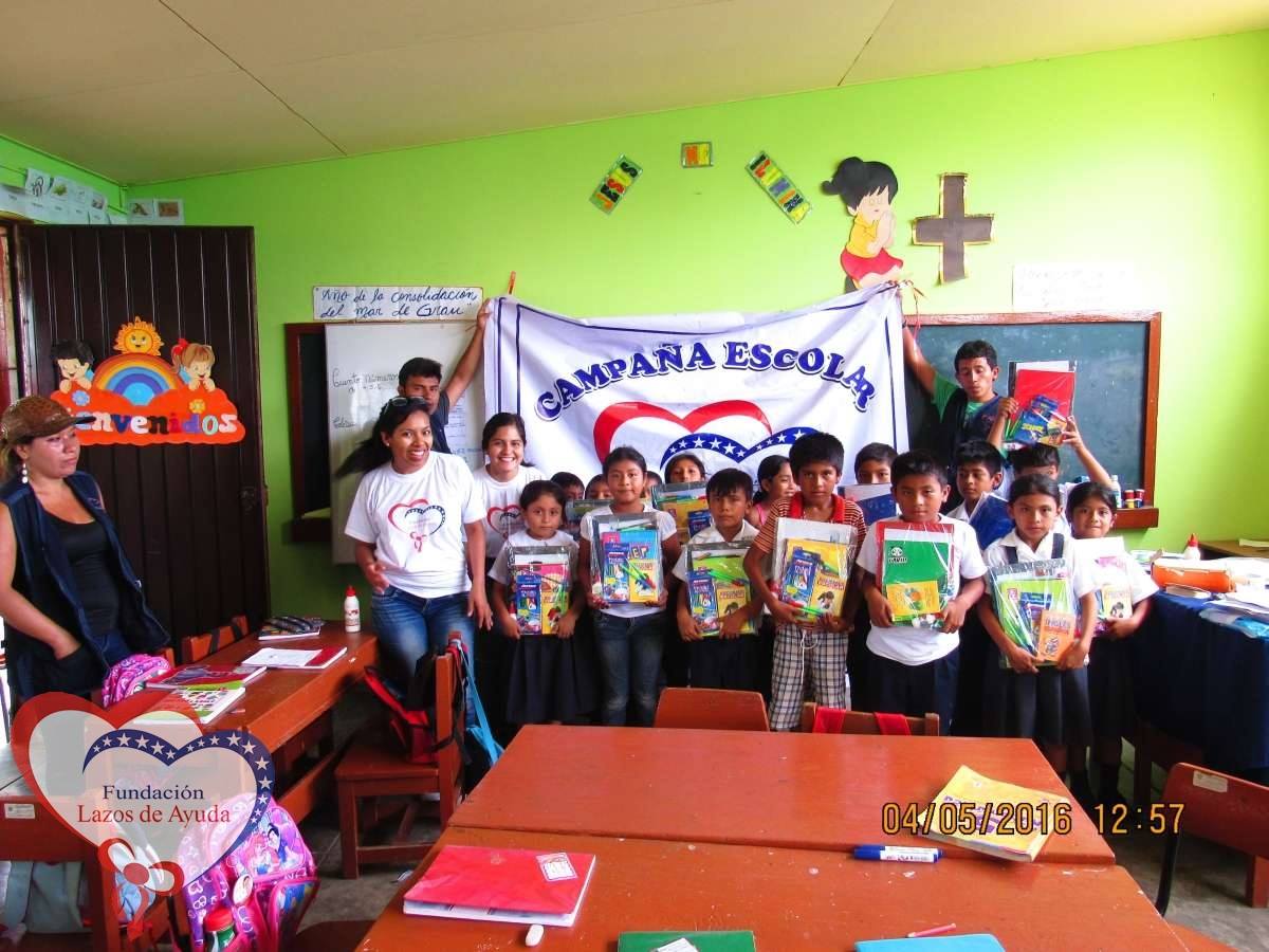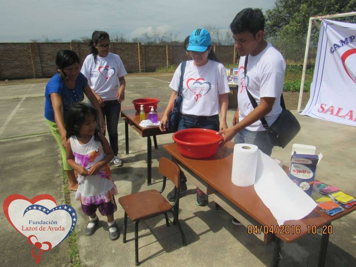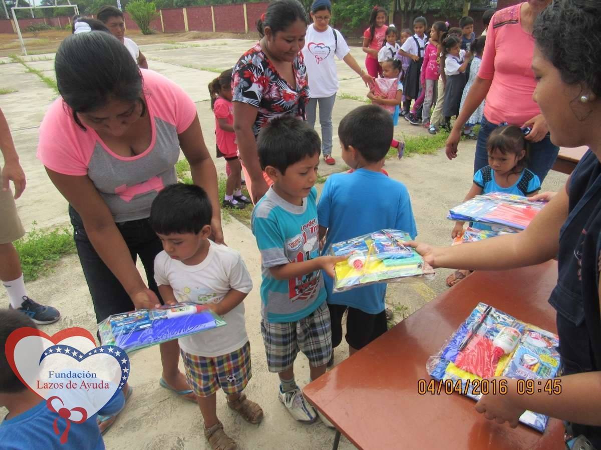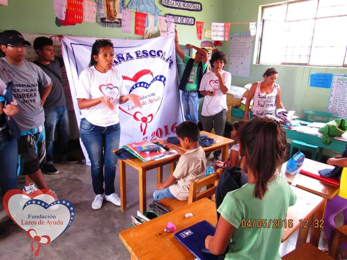 Lazos de Ayuda Foundation together with the student volunteers of human medicine from the Pedro Ruiz Gallo University of Lambayeque, this time fulfilling the objective of the 2016 school campaign, we visited 10 elementary, middle and High schools of the District of Salas of the Province of Lambayeque, Department of LAMBAYEQUE, rural areas of the North of PERU, in addition the young volunteers gave talks on hand washing and control of pediculosis.