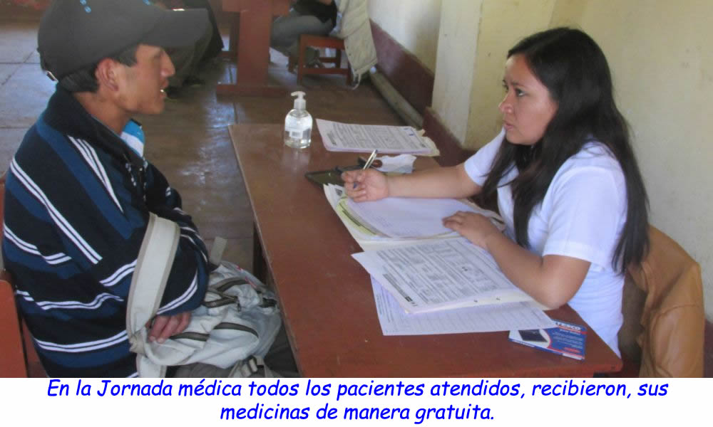 The medical chief of the health post of Caserío Totoras Dr. LUIS MARSHAL HUANCALLANCA thanked Ms. Silvia Jara Paredes, representative of the Foundation and the Volunteers for the medical day, as well as the donation of inputs for laboratory and Dental supplies.