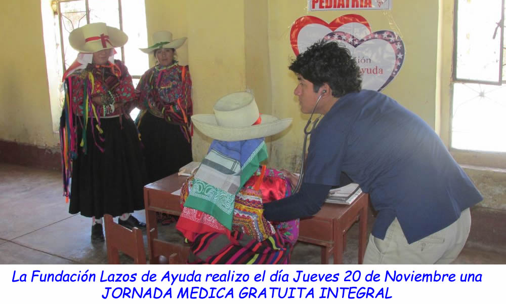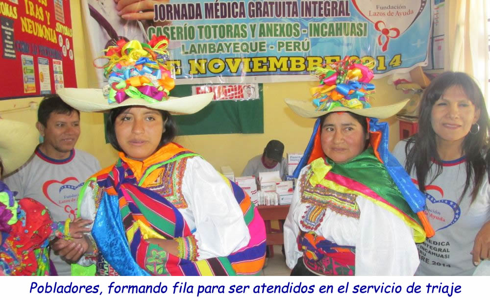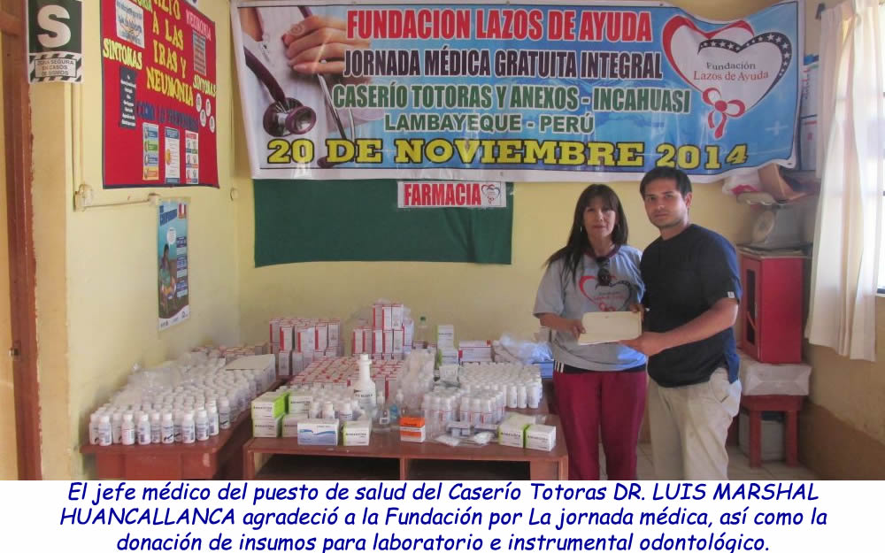 Lazos de Ayuda Foundation held on Thursday November 20, 2014 a free medical day INTEGRAL in the Caserio of Totoras and hamlets annexes like Cueva Blanca, Kutitoro, Kongacha, LLamica, Rumichaca, Totoras, Shillvaca, in the district of Incahuasi, Province of Ferreñafe, Lambayeque, Peru.