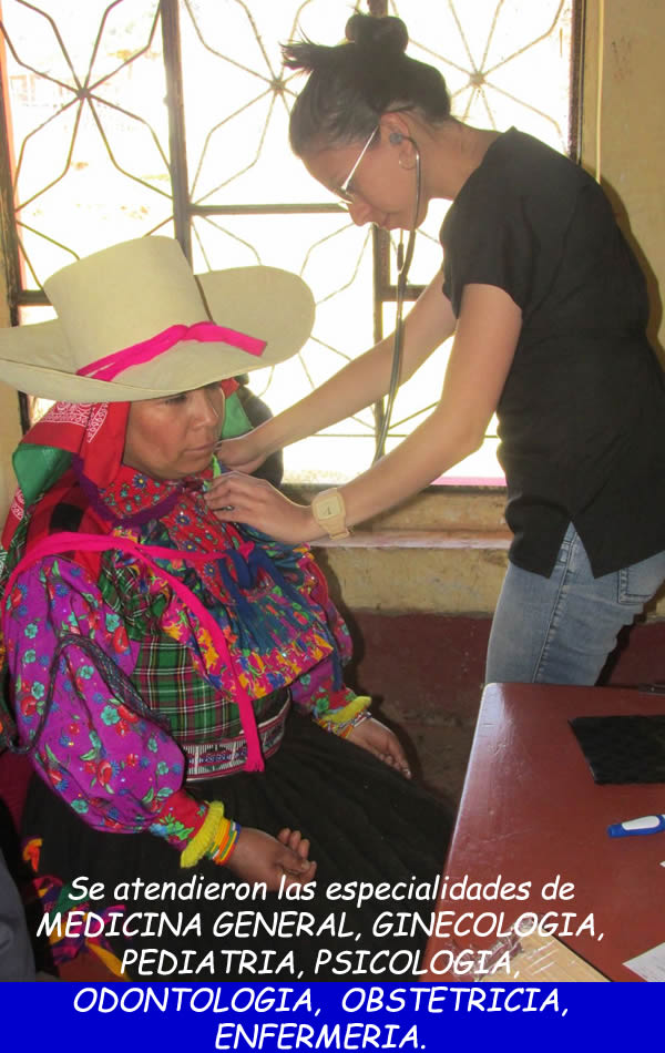 The participating physicians were: Dr. Patricia Saucedo Sosa, Dr. Luis Marshal Huallanca, Dr. Yesenia Guevara Cotrina, Dr. Milton Chapoñan Sipion, Las Odontologas, Doctor Mirtha Cruces Torres and Dr. Andrea Ruizcaro Alonso.