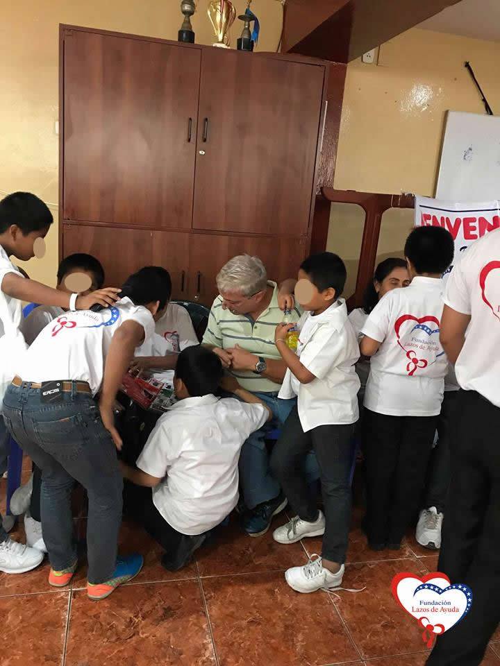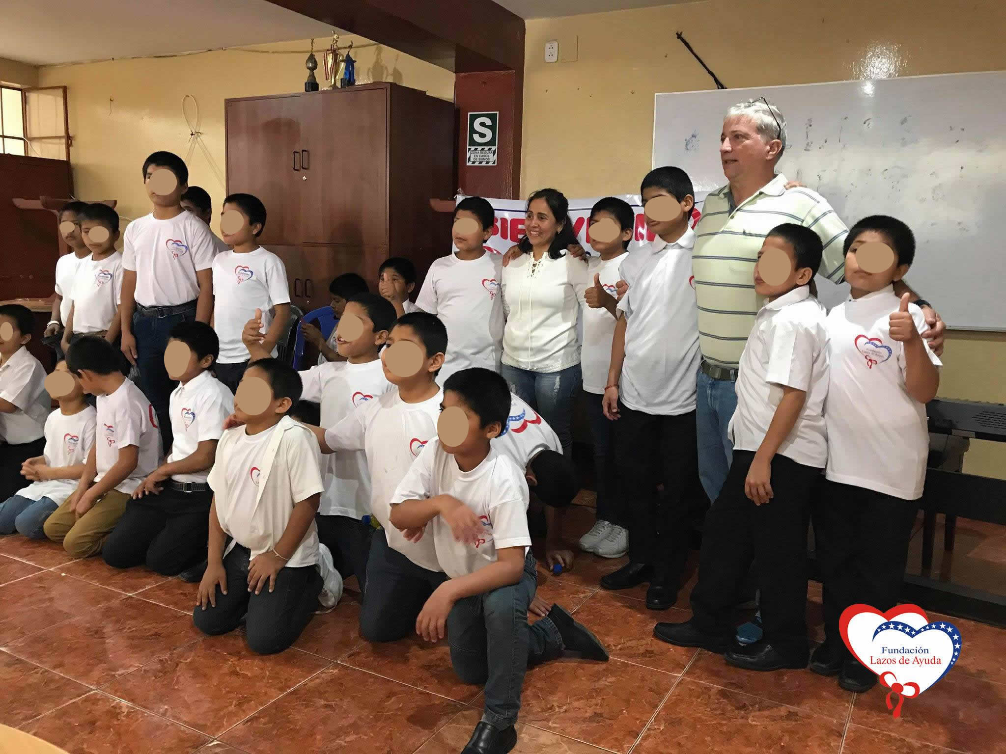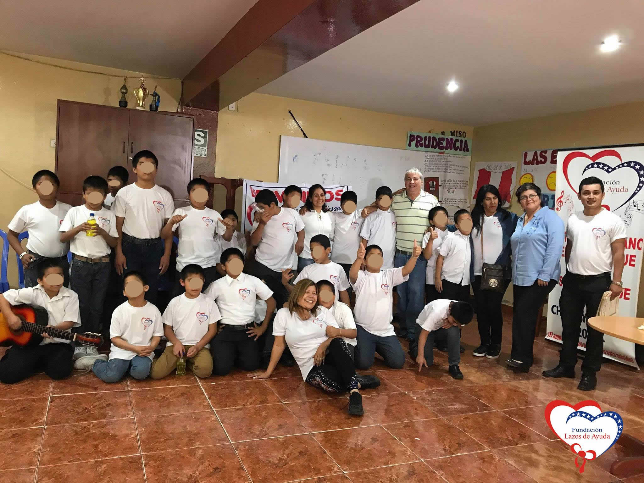 Lazos de Ayuda Foundation, represented by Mrs. Maritza Castro, the Silvia Jara volunteer and the music teacher Mario Frias Mundaca hired by the Foundation, offered an emotional welcome to Pascal Viellard and Dolly Paquita Vasquez. They arrived from Atlanta, United States, to visit this center where they provide care and therapy to children who came by abandonment, domestic violence, abuse of different types and other traumatic circumstances.